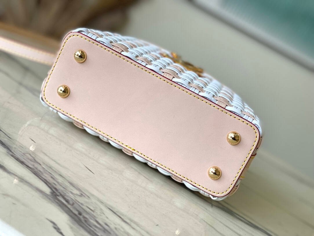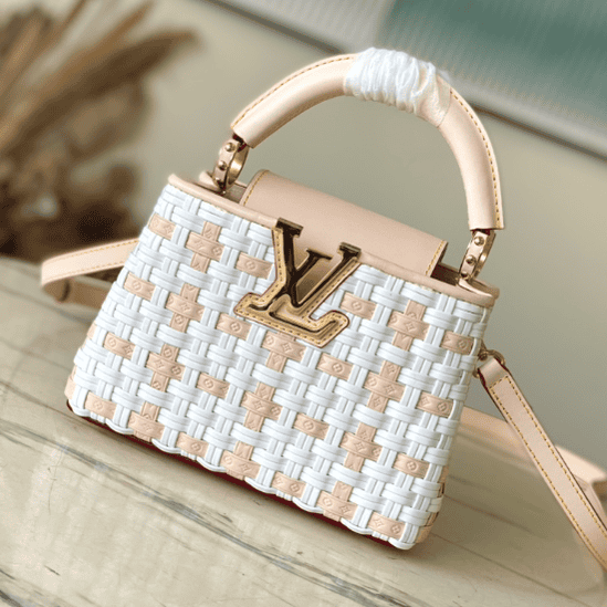 LV Heavenly Capucines handbag is from the Valentine’s Day limited series. It has a canvas strap and LV embossed leather ingeniously woven bag body, and is made of cow leather to shape the top handle, flap and adjustable shoulder strap. Leather and metal LV logo Complete the overall