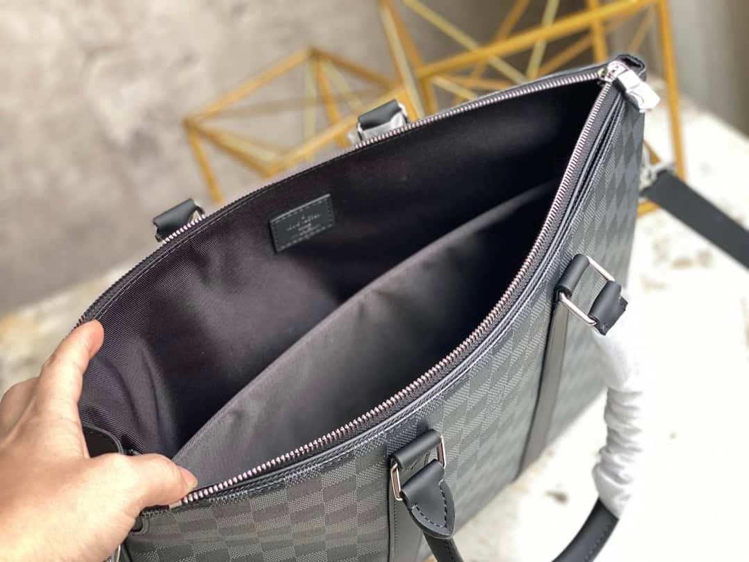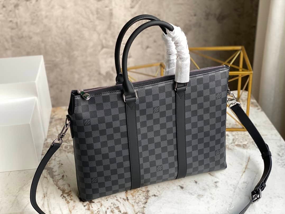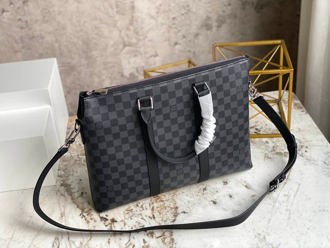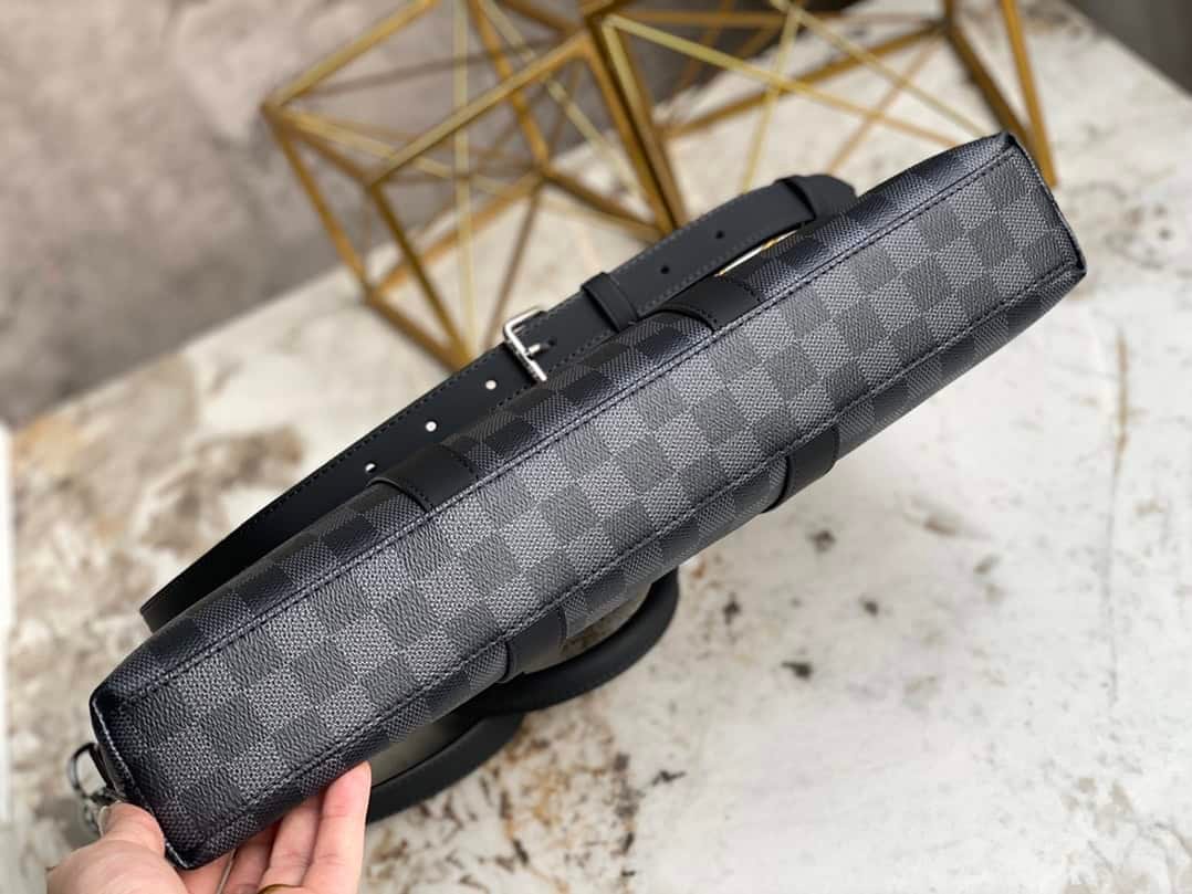 Heiger briefcase series is slim and elegant. This Anton briefcase is made of Damier Graphite canvas. It is slim and elegant. This Anton briefcase is made of Damier Graphite canvas, combining business functions with modern men’s flavor . The interior can hold a laptop and documents, and the front compartment and pockets provide easy access to items such as airline tickets, passports and more. Comes with a detachable shoulder strap for shoulder carry.