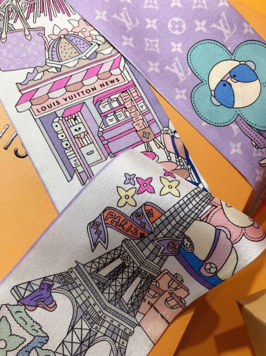 LV【HIDE AND SEEK】headband! This Hide And Seek headband relies on double-sided printing technology to depict the brand mascot Vivienne’s trip to Paris, while incorporating the classic heritage of the Monogram pattern! The silk fabric imported from France has a very special touch🌟It has many uses: scarves, headbands, bag accessories, belts…and so on. It is very easy to match with clothes in summer and bags in winter❤️ The top-quality silk has a strong luster 👏Exquisite, this one is really a must-buy🎁