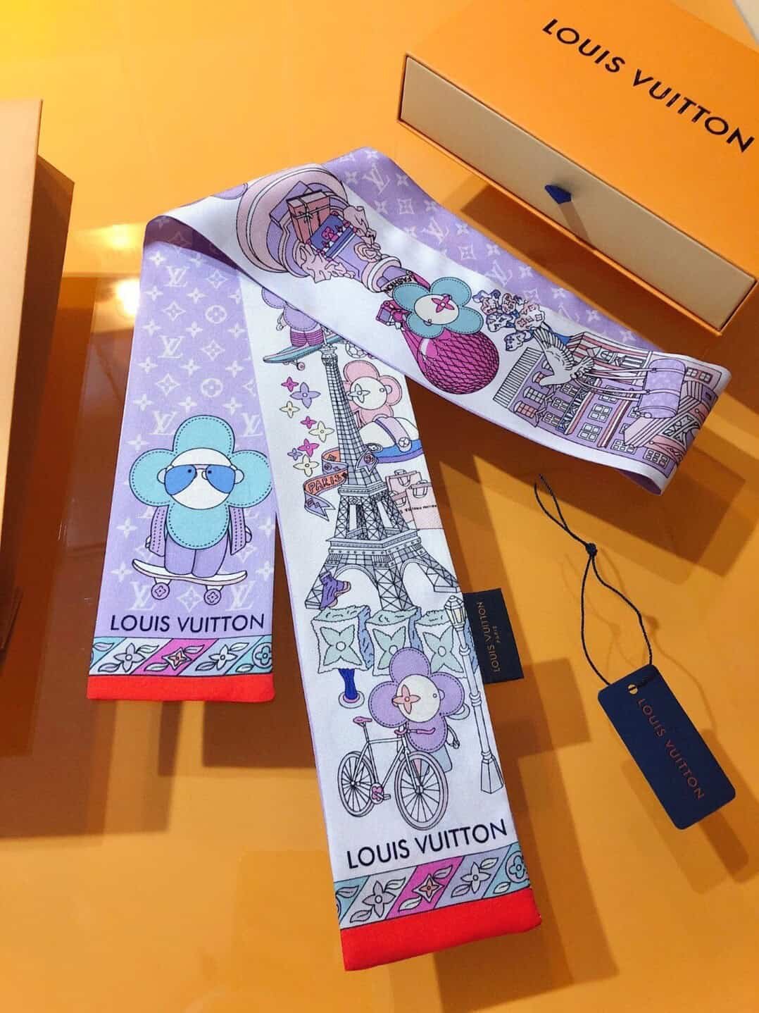 LV【HIDE AND SEEK】headband! This Hide And Seek headband relies on double-sided printing technology to depict the brand mascot Vivienne’s trip to Paris, while incorporating the classic heritage of the Monogram pattern! The silk fabric imported from France has a very special touch🌟It has many uses: scarves, headbands, bag accessories, belts…and so on. It is very easy to match with clothes in summer and bags in winter❤️ The top-quality silk has a strong luster 👏Exquisite, this one is really a must-buy🎁