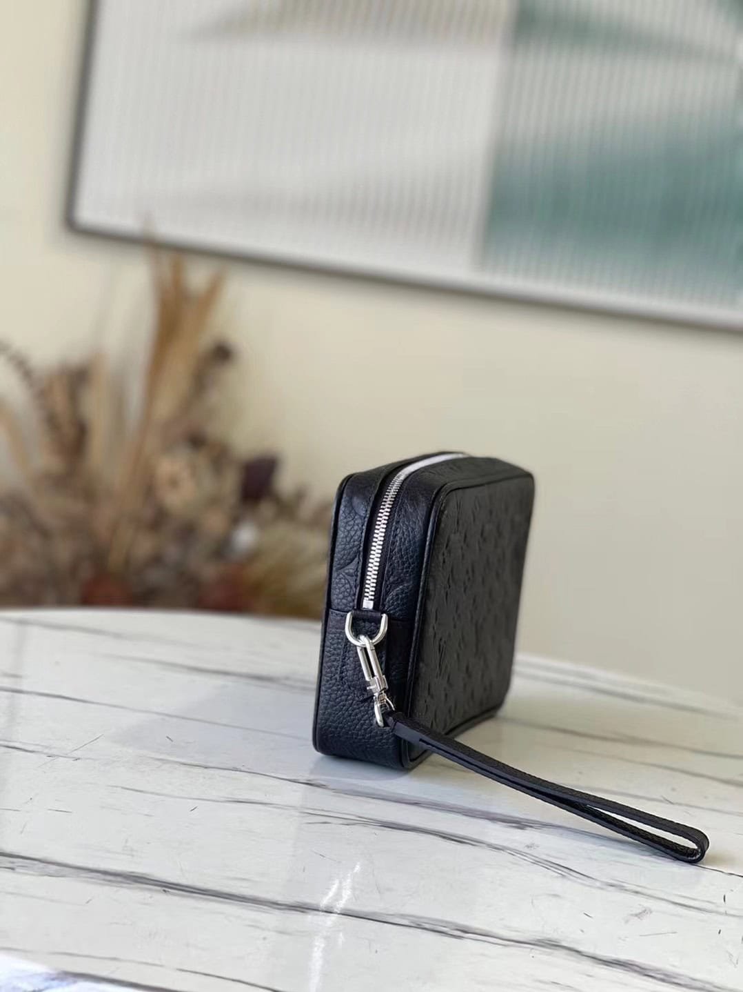 Full leather embossed zKASAI handbag Spacious zipper opening Abundant internal and external pockets and slots bring great practicality This Kasai handbag made of iconic Damier Graphite coated canvas can be clipped on the inside of the arm or Can be tied to the wrist through the strap.