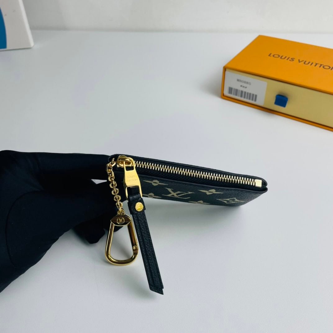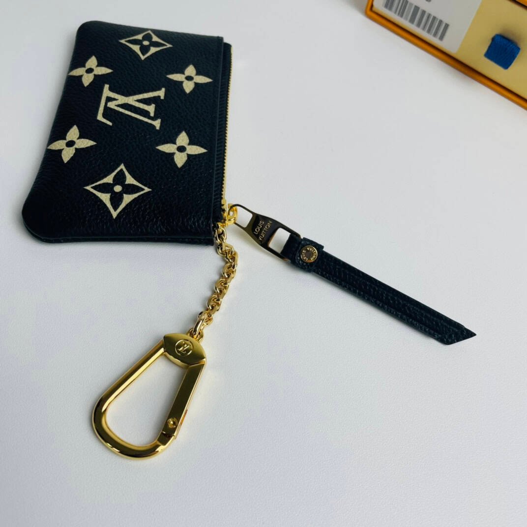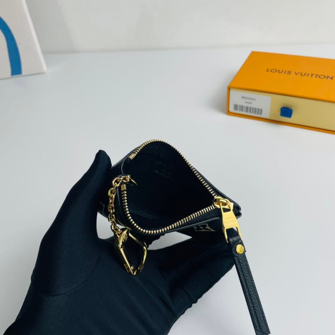 Exclusive real shot! Elegant and practical, this key case in Monogram Empreinte leather zippers to securely store essentials such as keys, coins, cards and lipstick, and can also be attached to a handbag, belt or the D-ring inside a Louis Vuitton bag.