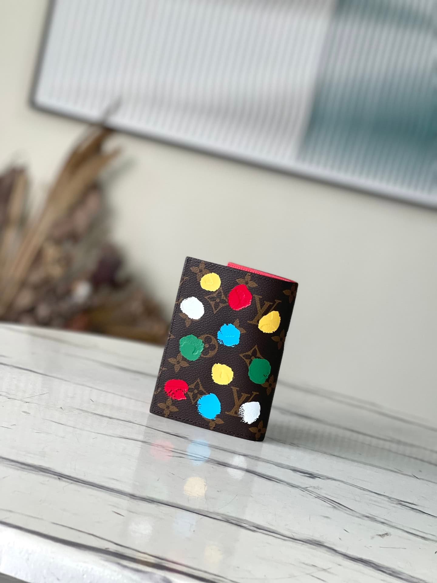 Kusama Yousheng cooperation series launched LV x YK passport holders, putting the travel function design in the art world. The surface of the Monogram canvas reflects colorful polka dots, which are hand-painted through the silk screen process, just like the artist’s visual business card.