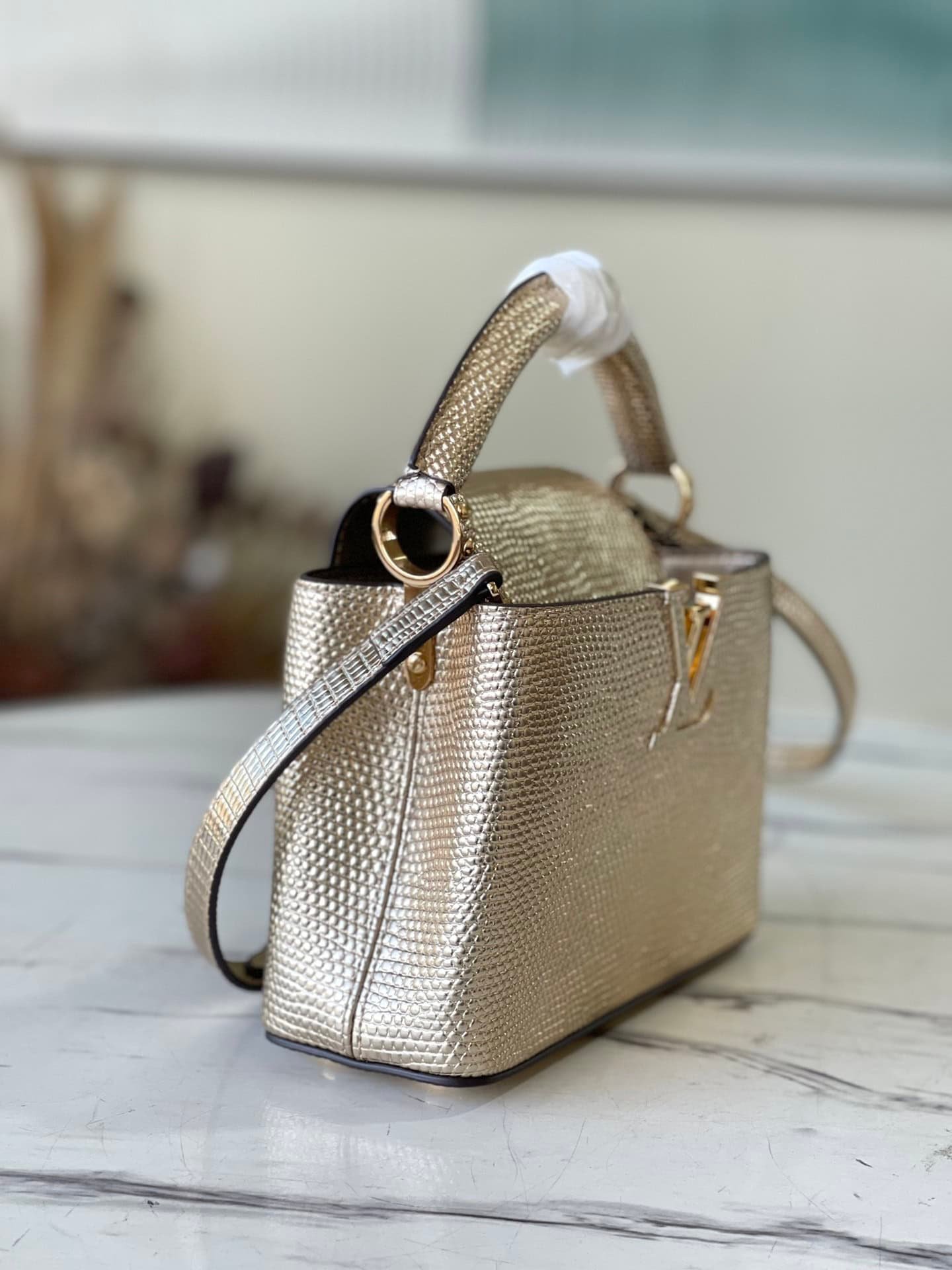 Louis Vuitton Lizard Mini Capucines Handbag – Golden