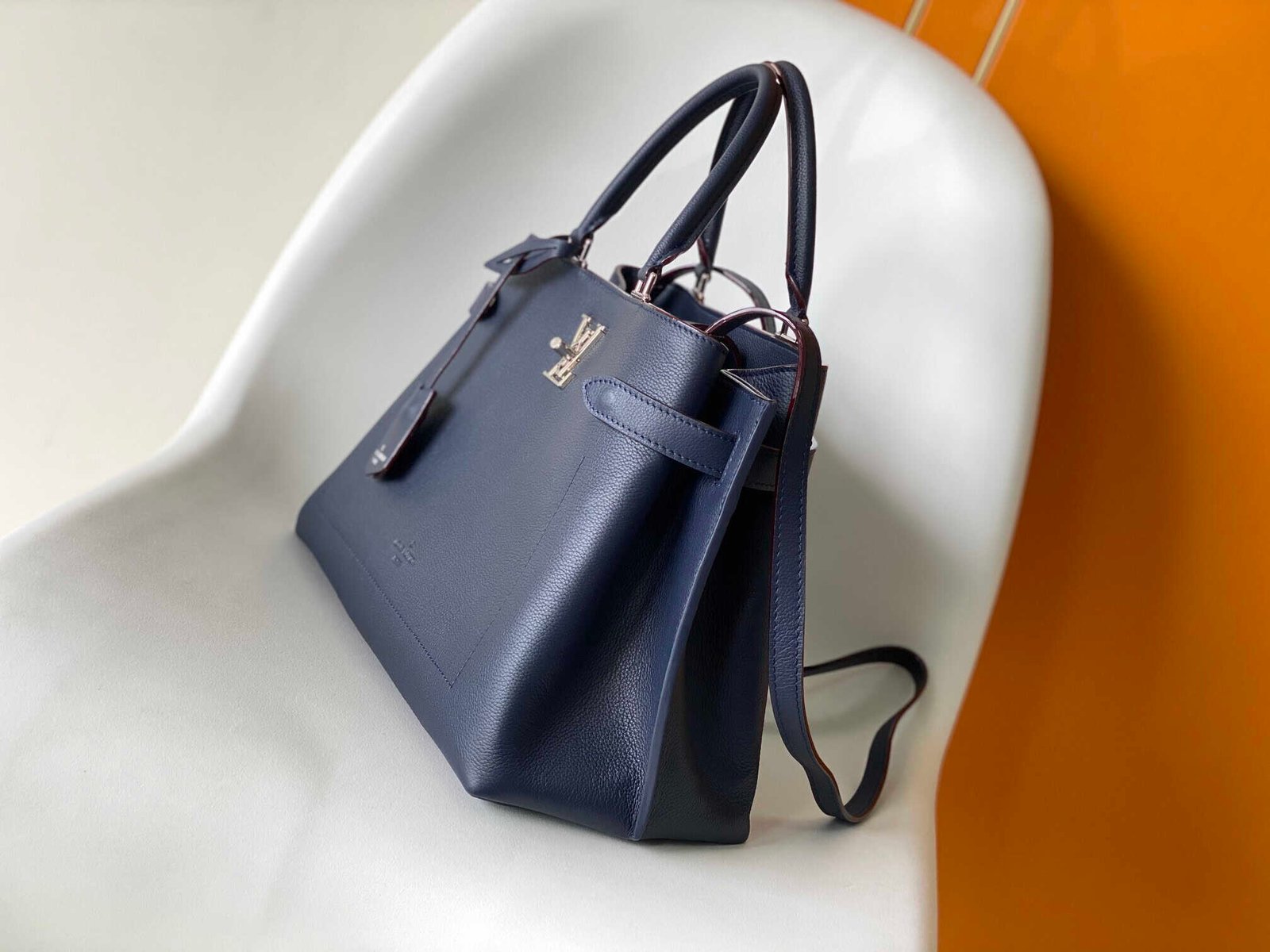 The Lockme Day bag combines elegance and functionality in grained calfskin. Feminine details like the LV lock buckle and key case set off the clean lines, while the structured structure brings plenty of capacity. Easily switch the carrying mode and travel as you like.