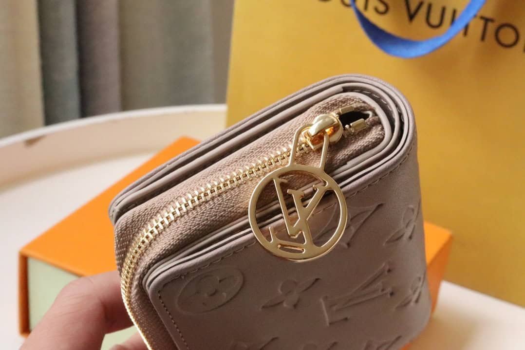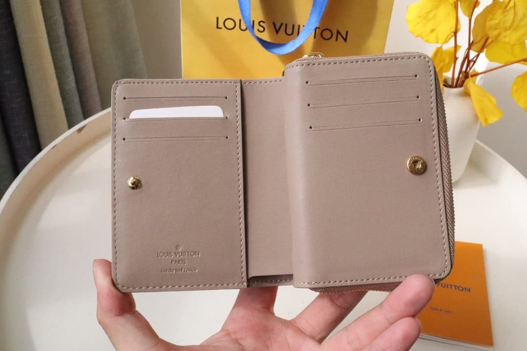 The Zippy coin purse Lou Coussin wallet is embossed with the classic Monogram pattern in supple lambskin for a fluffy effect. The petite boxy shape hides plenty of room, with card slots, bill compartments and side zipped coin pockets.