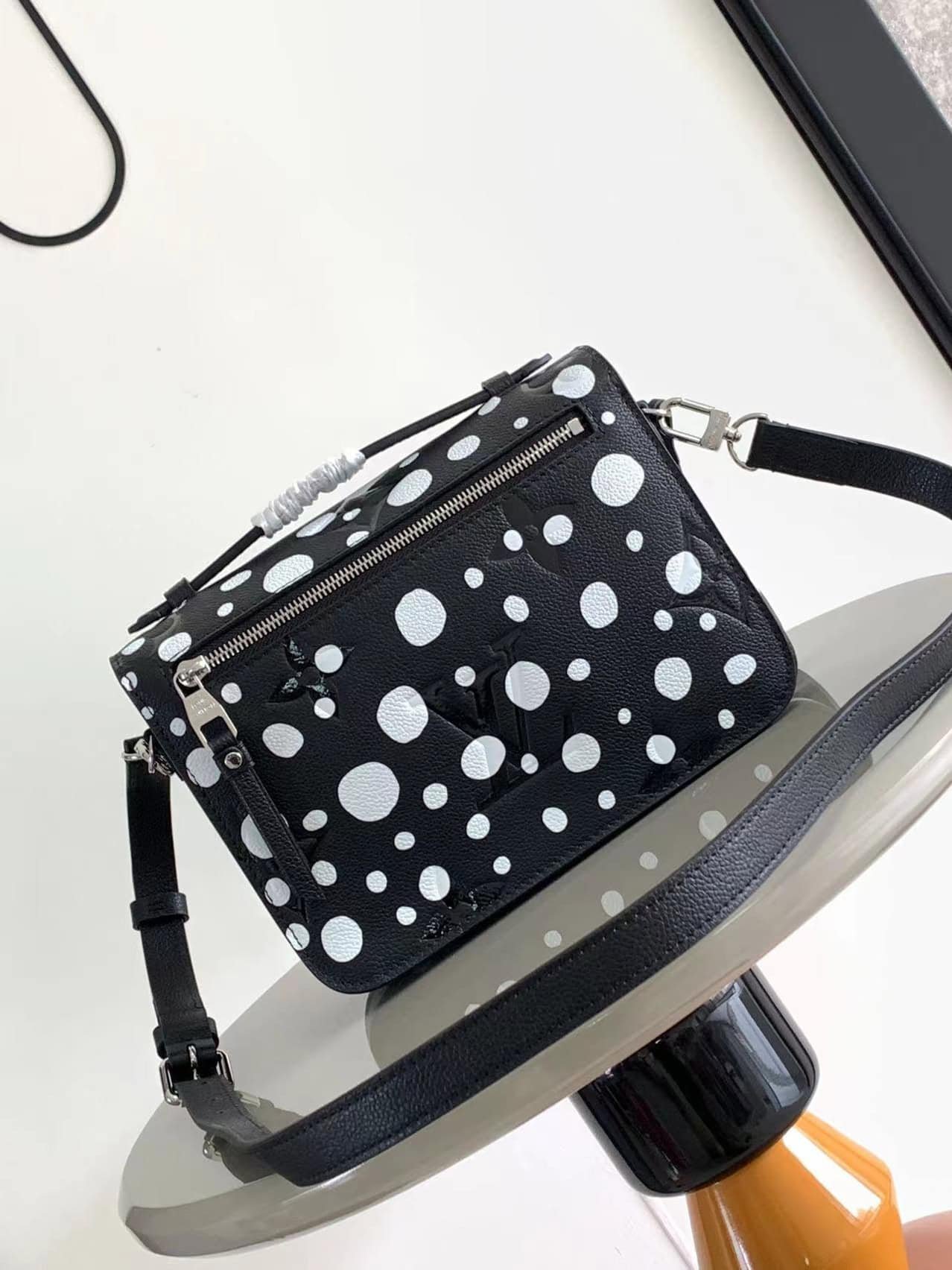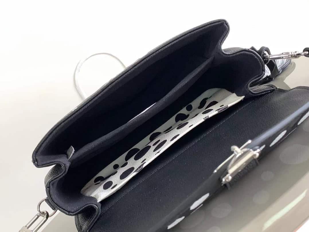 Louis Vuitton once again joined hands with Yayoi Kusama to place this LV x YK Pochette Métis handbag in the infinite polka-dot universe, exploring the source of inspiration of this Japanese artist. The polka-dot pattern is like a star on the surface of the cow leather, the Monogram embossing lays the foundation of the brand, and the pumpkin-shaped decoration highlights another classic image in Yayoi Kusama’s works.
