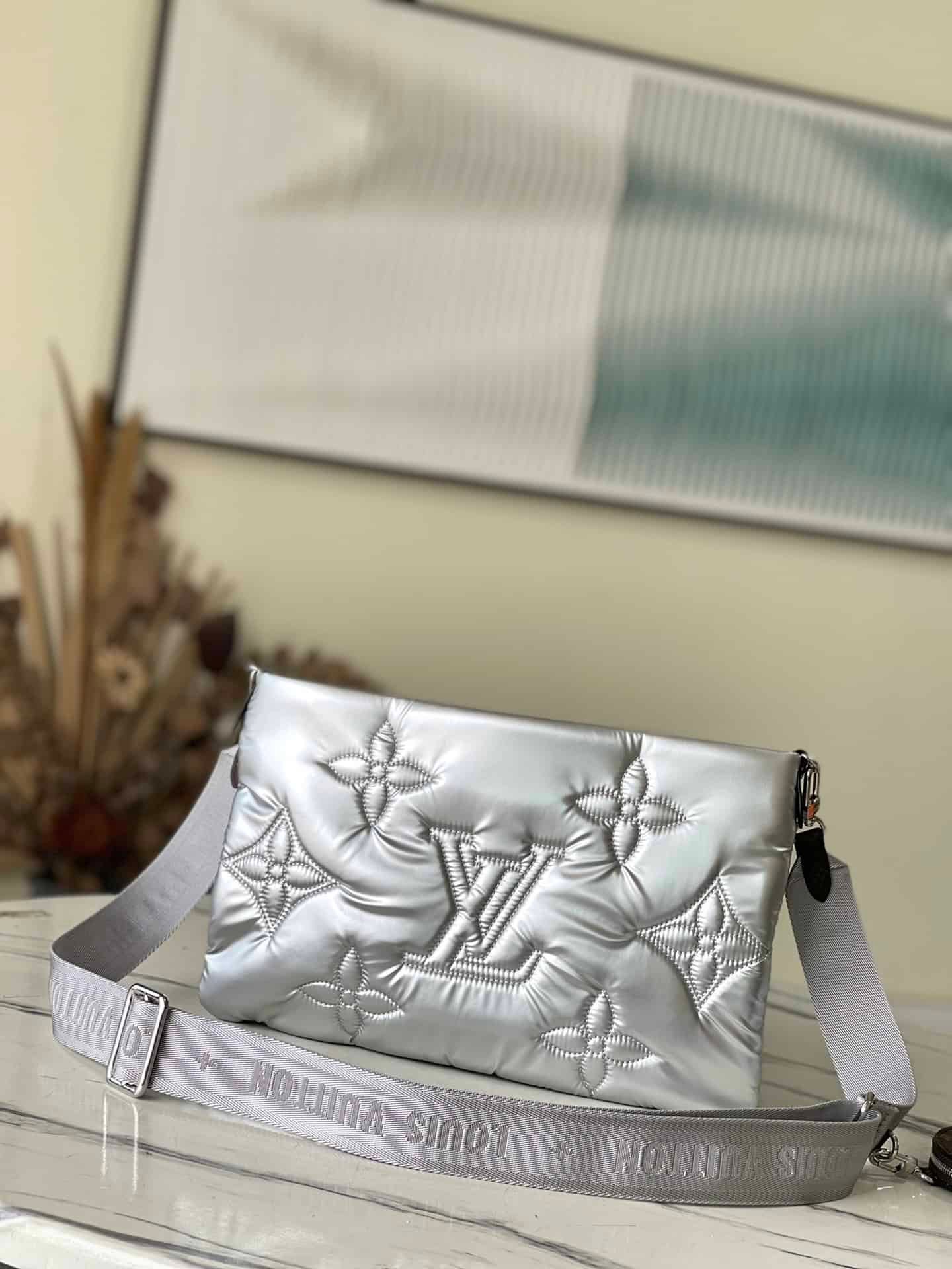 Maxi Multi Pochette Accessoires in Econyl Recycled Nylon. It has a Monogram embroidered exterior for a fluffy cushioned feel and a Mini Monogram printed Econyl lining. Featuring multiple pockets and compartments, it brings together the Pochette Accessoires clutch, Pochette Accessoires mini clutch and round coin purse in one place.