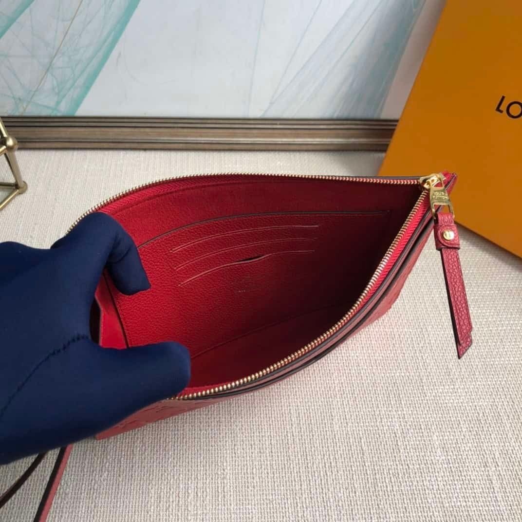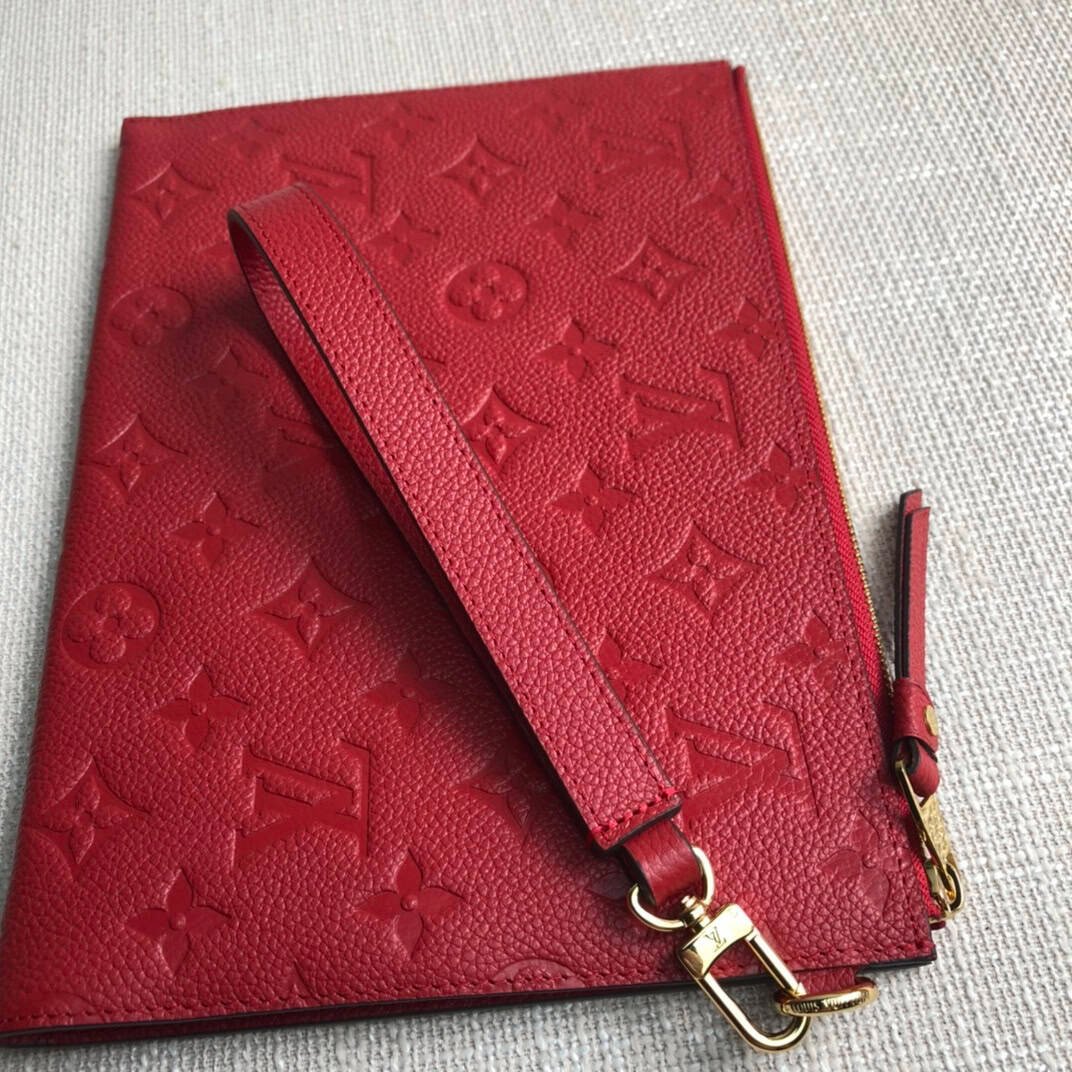 The Mélanie medium clutch is made of soft Monogram Empreinte leather with Monogram embossing slightly on the surface, with a detachable wrist strap, V-shaped front pocket and card slot, showing the fusion of elegance and function.