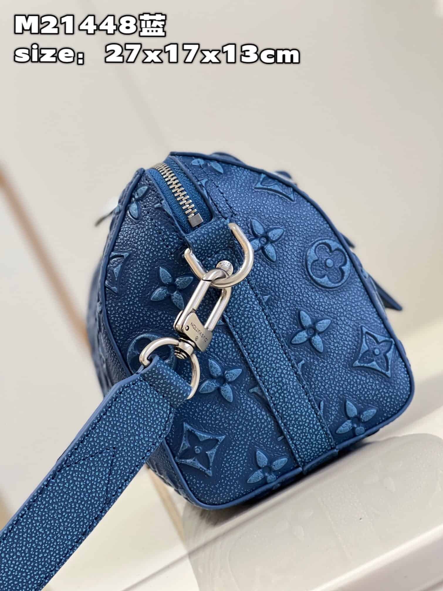 blue men’s bag speedy series This City Keepall handbag is made of faded effect leather, and the Monogram pattern is presented by embossing and printing. Leather side pockets and the Louis Vuitton signature leather nameplate are inspired by the classic elements of the Keepall travel bag, and the main compartment can accommodate daily needs, making it a trendy choice for everyday travel.