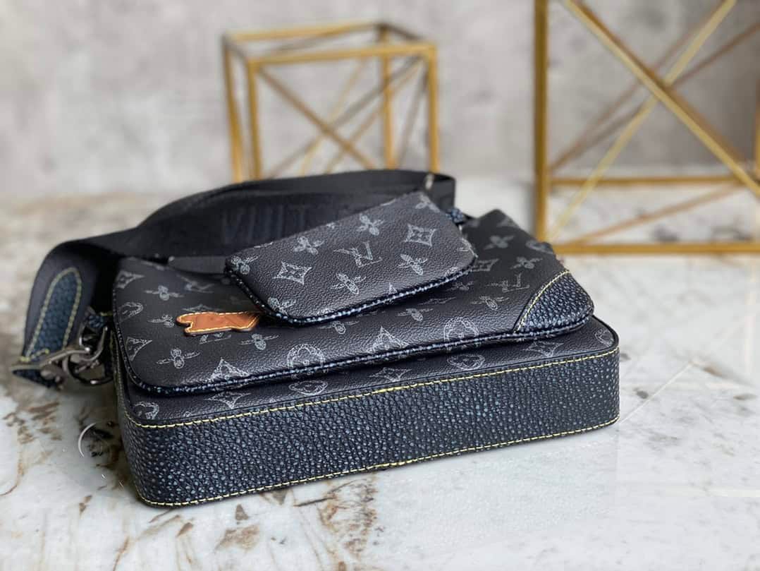 Black men’s three-piece suit series Pochette Trio messenger bag series Pochette men’s three-in-one handbag is made of two classic canvases. The iconic gray pattern of the same tone highlights the lines of this multi-functional design.
