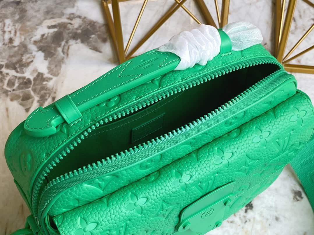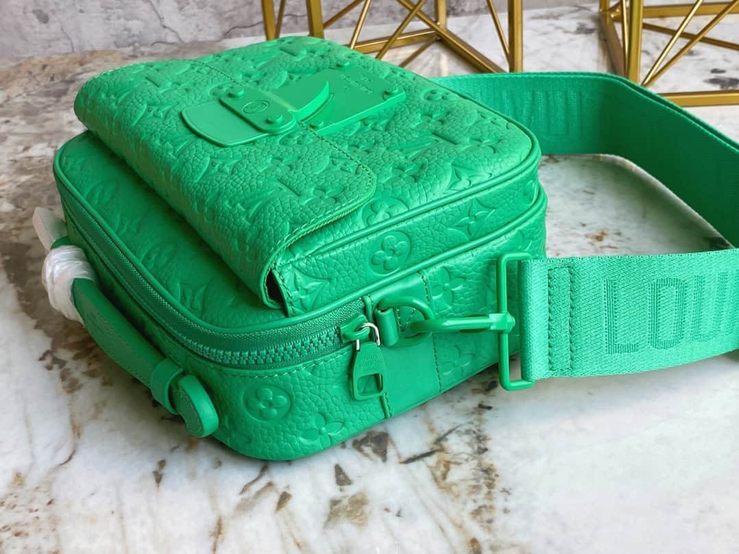 Green full leather men’s messenger bag series S Lock messenger bag is made of Monogram Macassar canvas, and the new lock is inspired by the hard case lock designed by Georges Vuitton in 1886. A special finishing process gives this magnetic metal closure a bold and modern look. It also features ample zippered compartments, a hard case-style leather handle and an LV logo shoulder strap for stylish style and ease of use.