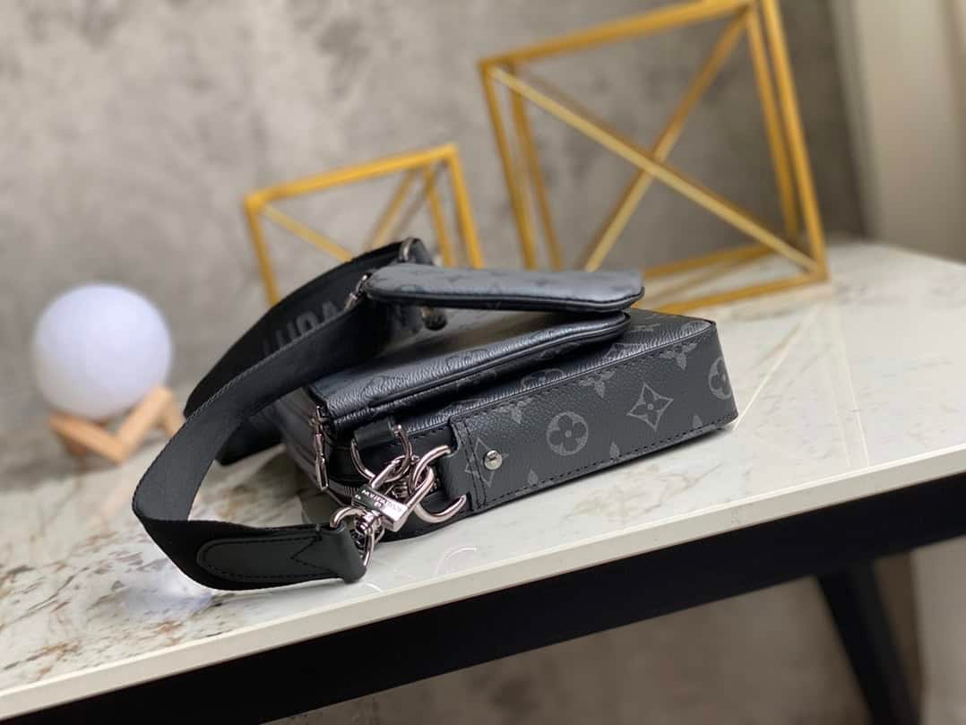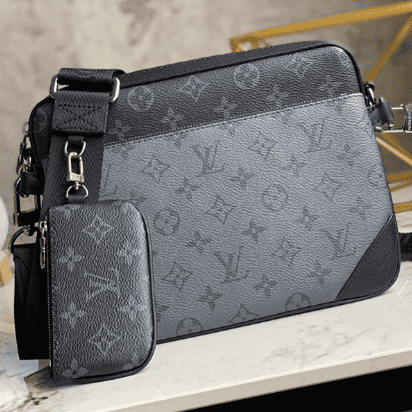 Black flower men’s three-piece Pochette Trio messenger bag series Pochette men’s three-in-one handbag is made of two classic canvases, and the iconic tone-on-tone gray pattern highlights the lines of this multifunctional design , in addition to the functions of a traditional messenger bag, it is also equipped with a detachable zipper bag and a coin purse attached to the strap.