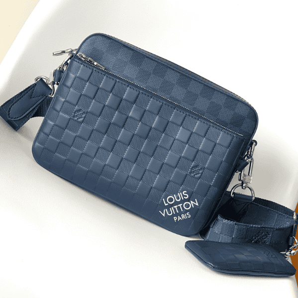Trio messenger bag by Monog ram Eclipse Canvas Made with Monogram Eclipse Reverse Canvas. A signature tonal gray pattern accentuates the lines of this versatile building design. In addition to the functions of a traditional cross-body handbag, it is also equipped with a detachable zipper pocket and a coin purse attached to the strap.