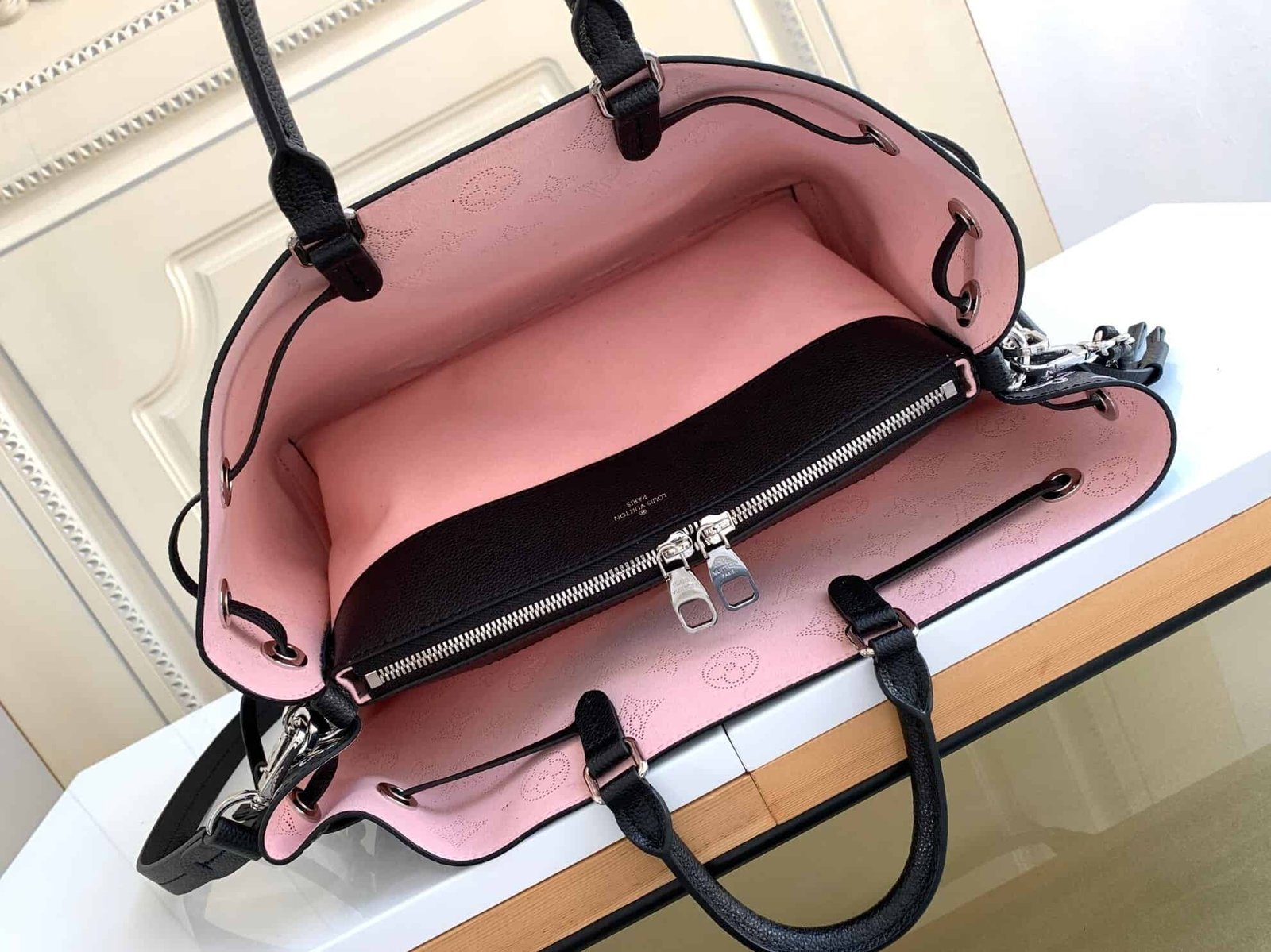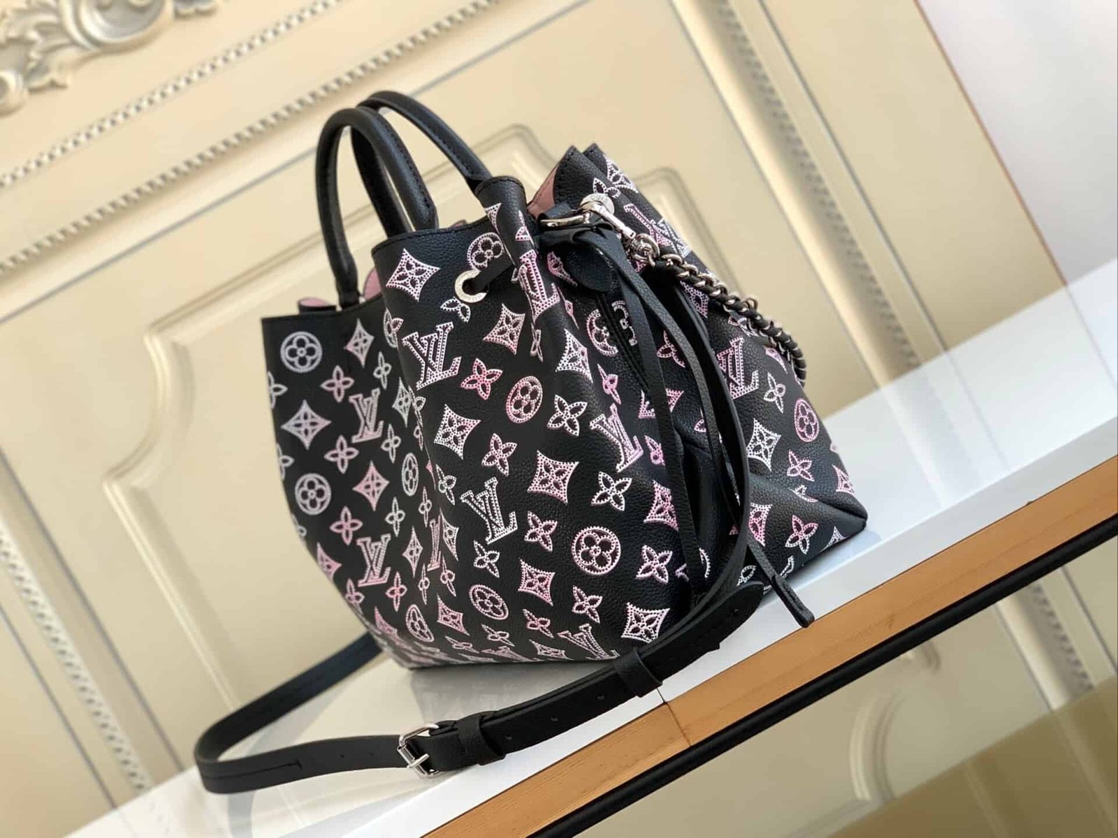 This Bella Tote handbag is made of engraved perforated calf leather, and the Monogram pattern is set off in gradient colors. Comfortable and roomy for on-the-go, it features a top leather handle and a detachable and adjustable shoulder strap.
