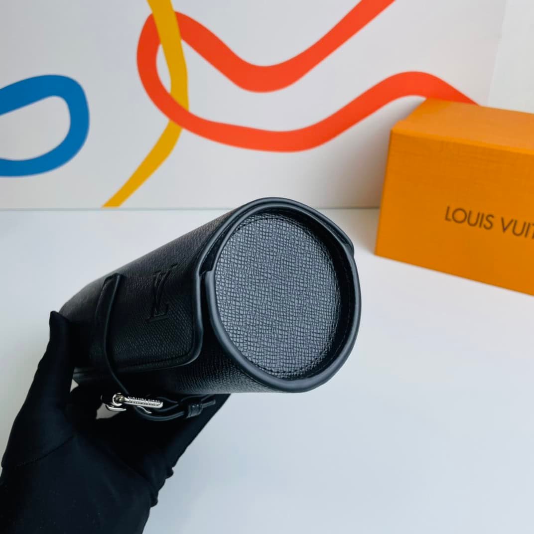 Crafted in signature Monogram canvas with a soft, luxurious lining, this watch case is the ideal travel accessory. Size: 20×8×8cm
