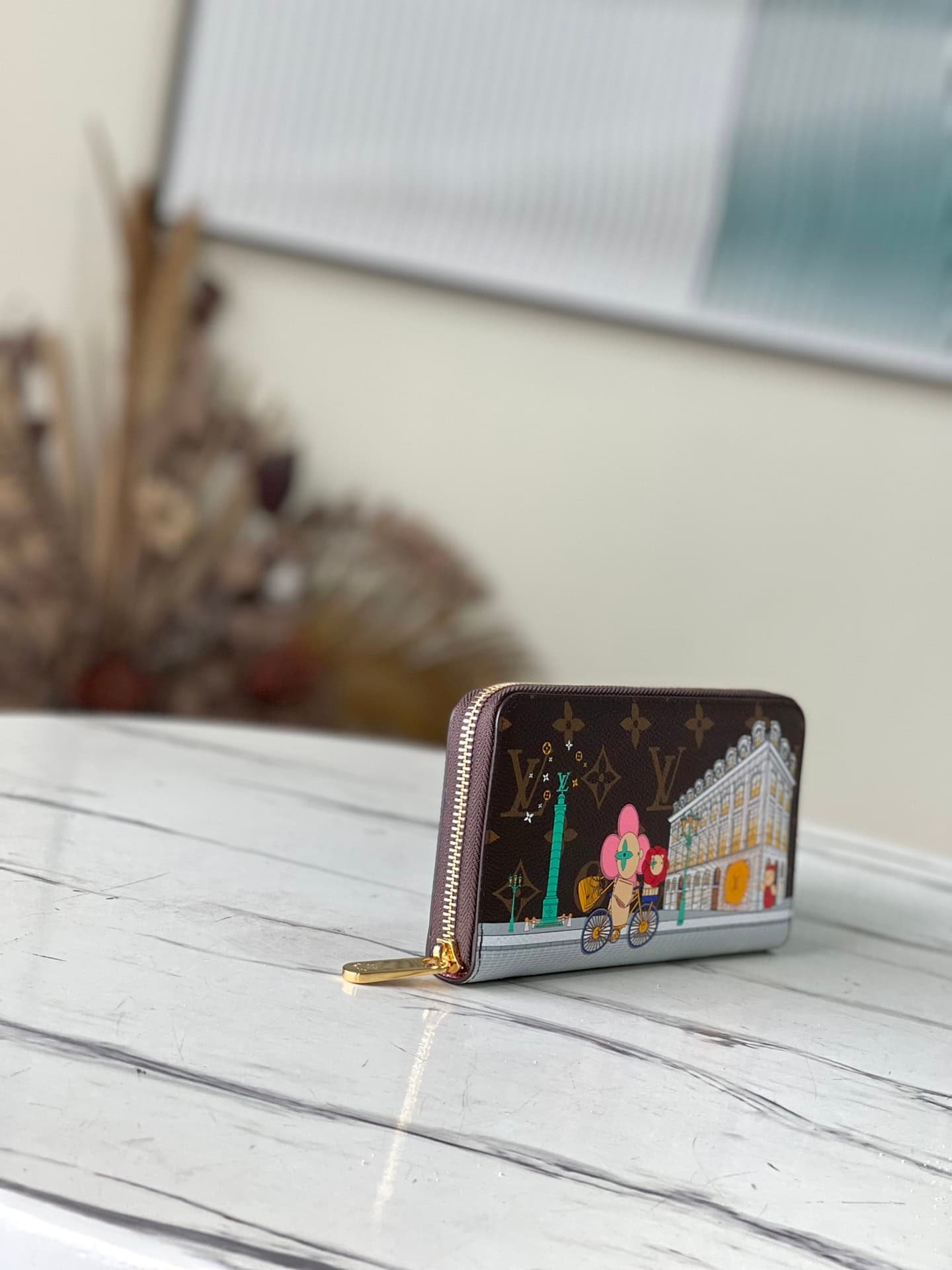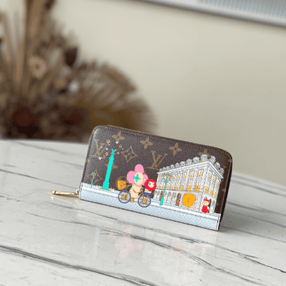 Vivienne Holidays 2022 series launched a limited edition Zippy single pull, highlighting the travel heritage. The colorful print records mascot Vivienne’s visit to the Soho boutique in New York, and appeared together with the local iconic yellow taxi. Discreetly structured in Monogram canvas, it has a zip closure and leather lining.