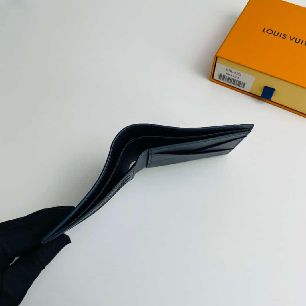 The Multiple Wallet embosses the Monogram pattern on calfskin and overlays colors to accentuate the minimalist lines. The elegant inner layer has card slots and bill pockets on both sides.