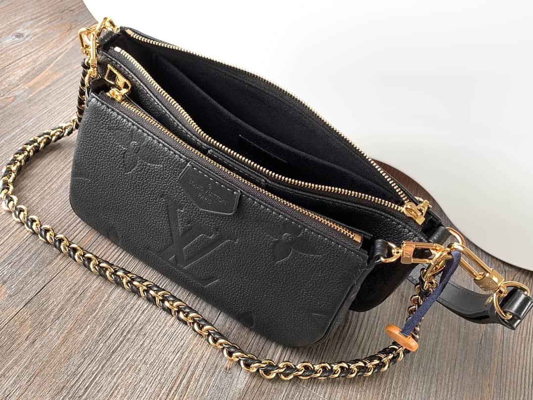 The Multi Patochette Accessoires crossbody bag is crafted in Monogram Empatreinte leather in a two-in-one design with a removable clutch, chain and leather shoulder strap. The oversized Monogram embossing on the front and the classic Monogram pattern on the gusset complement each other.