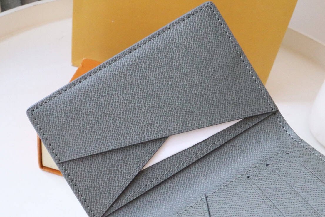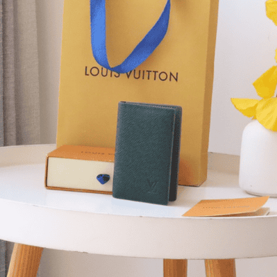 Louis Vuitton’s classic compact wallet, the Pocket Wallet in textured Taïga leather. The low-key color matching of the wallet and the low-key LV initials logo at the bottom bring an elegant style, the business card holder and compartment are more practical, and the wallet can be easily stored in most pockets.