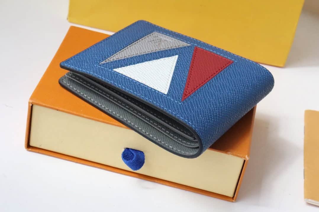 The Multiple Wallet pays homage to Louis Vuitton’s heritage with traditional marquetry, delicately pieced together in Taïga leather and infused with contemporary colors with V-shaped inlays. The interior has card slots and compartments, making it an everyday companion for the modern man.