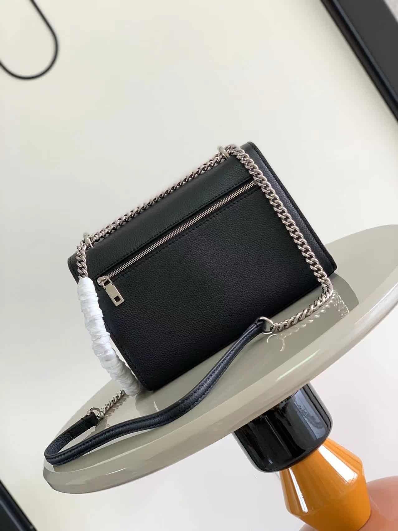 Welcome the new season with exquisite and trendy two-color. Soft grained calfskin is embellished with a dazzling turn buckle, and the slender chain shoulder strap is easy to fold for cross-body or short-shoulder options~