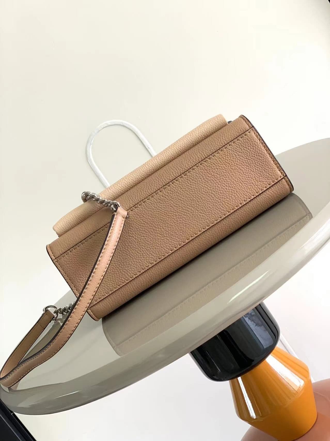 Welcome the new season with exquisite and trendy two-color. Soft grained calfskin is embellished with a dazzling turn buckle, and the slender chain shoulder strap is easy to fold for cross-body or short-shoulder options~