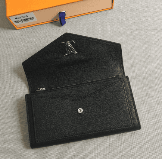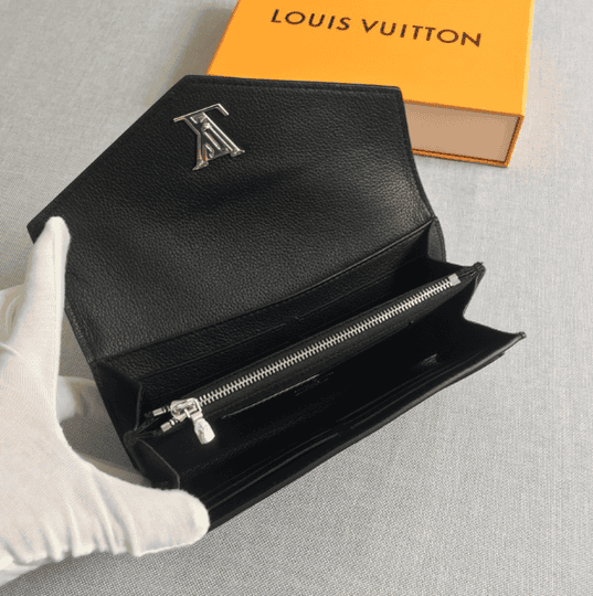 The elegant Mylockme wallet in soft calfskin echoes the crisp design of the Mylockme handbag collection. The envelope-style flap decorated with LV letters is equipped with a pair of large compartments and multiple pockets, which are convenient and practical. Front patch pockets provide easy access to tickets and more.