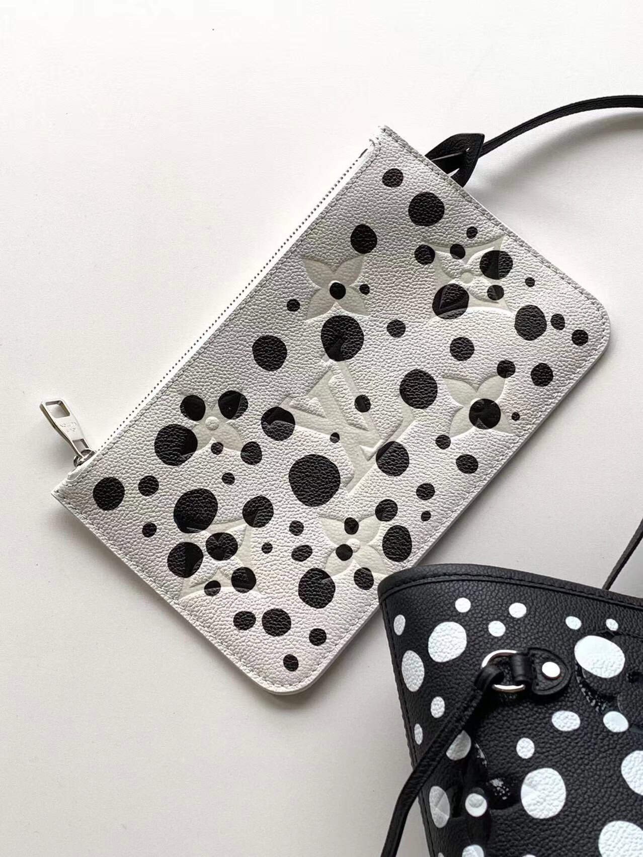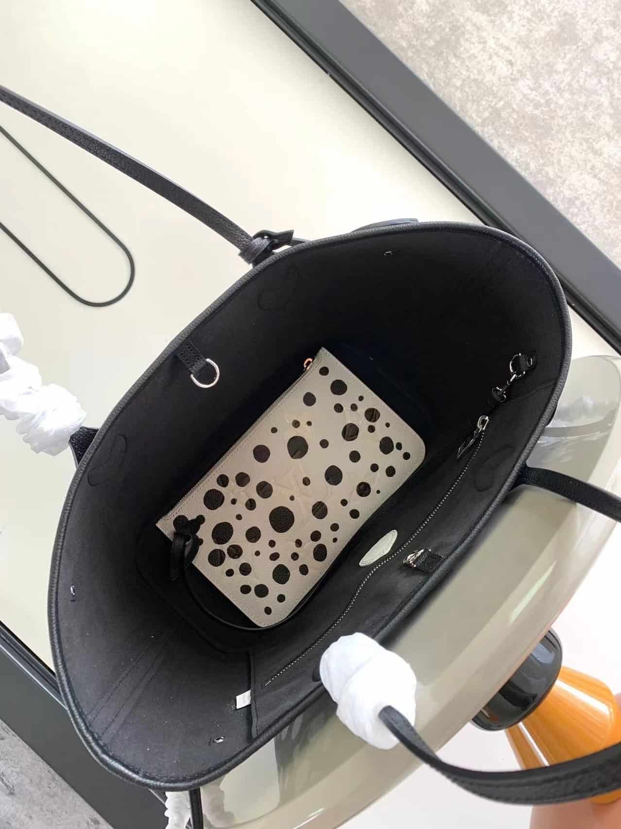 This L Louis Vuitton once again joined hands with Yayoi Kusama to place this LV x YK Neverfull medium-sized handbag in the infinite wave-dot universe to explore the source of inspiration of this Japanese artist. The polka-dot pattern is like a star on the surface of the cow leather, the Monogram embossing lays the foundation of the brand, and the pumpkin-shaped decoration highlights another classic image in Yayoi Kusama’s works.