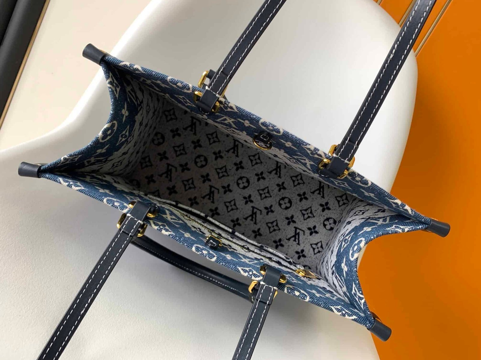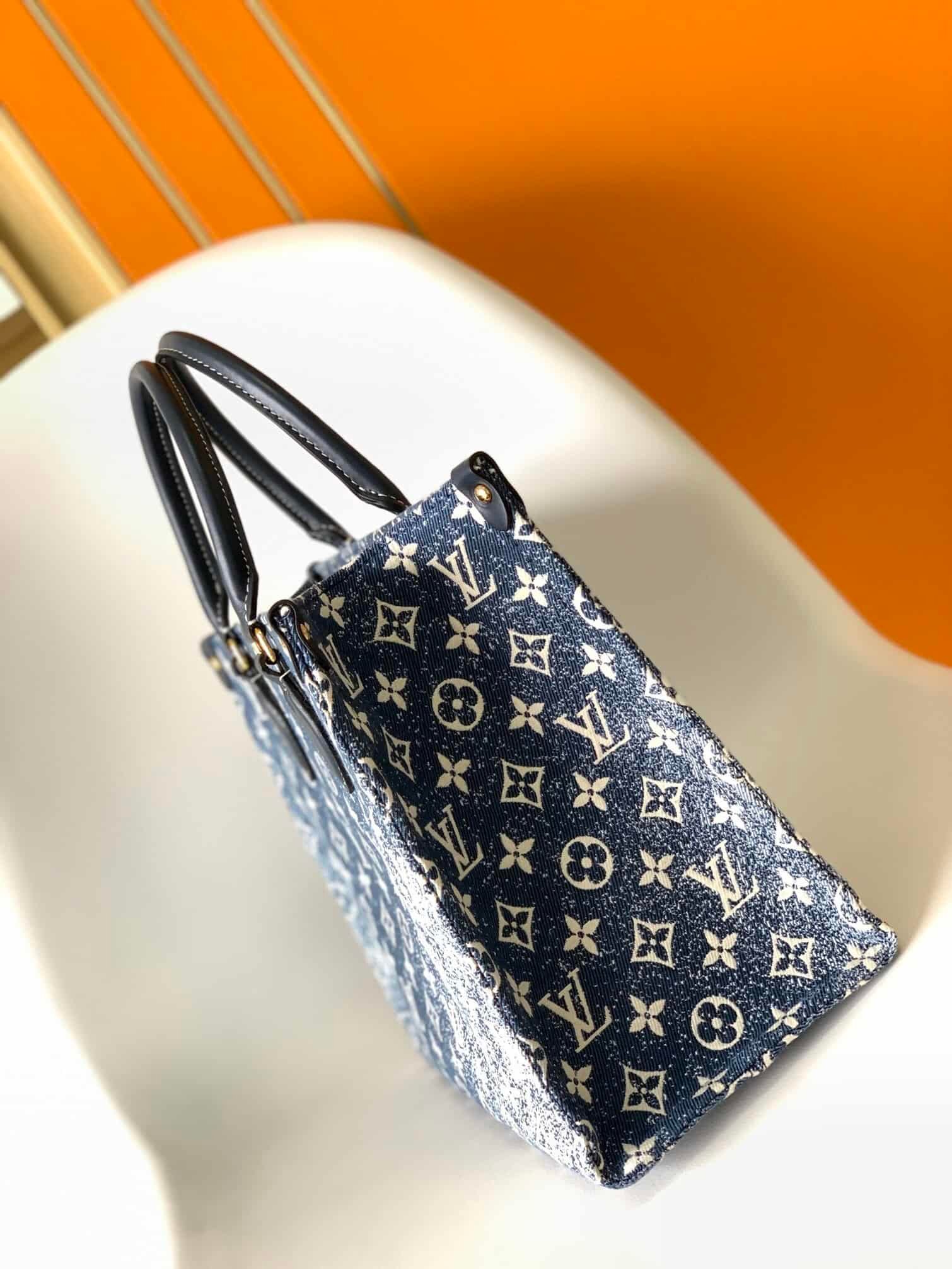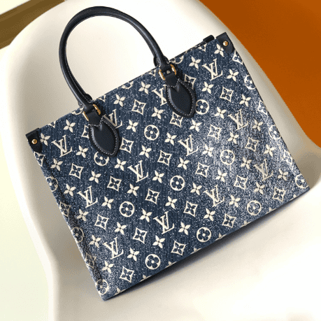 ONTHEGO Hand work, shopping or weekend trips, pick up the Onthego handbag and start immediately. Denim Monogram print contrasts with Monogram trim, with ample inner design, the avant-garde and modern sense of the bag is self-evident.