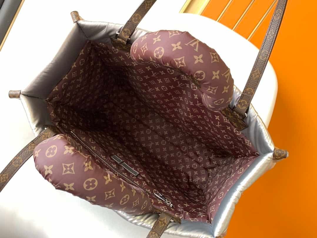 This OnTheGO large handbag uses Econyl recycled nylon to declare Louis Vuitton’s EcoDesign action concept Monogram embroidery pattern combined with padded texture Ample space to meet business shopping or travel needs Long shoulder strap and top The handle provides a variety of comfortable carrying methods