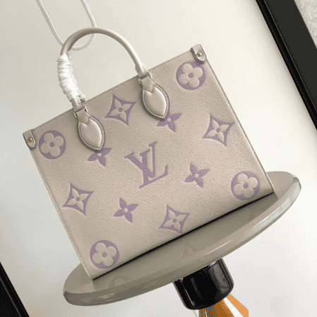 OnTheGo medium Tote bag is printed and dyed with the Monogram pattern and then embossed on soft grained cowhide. Its ample interior can accommodate a laptop computer and other office supplies. The long and short handles are easy to carry or carry on the shoulder.