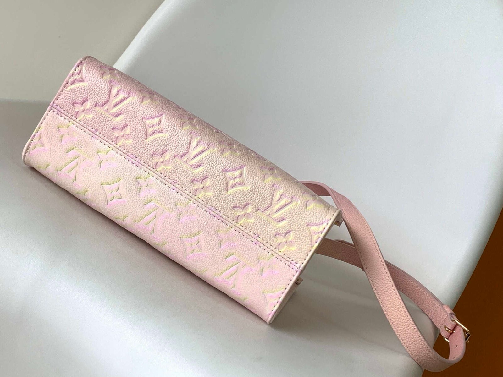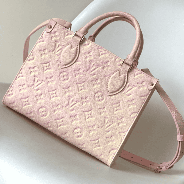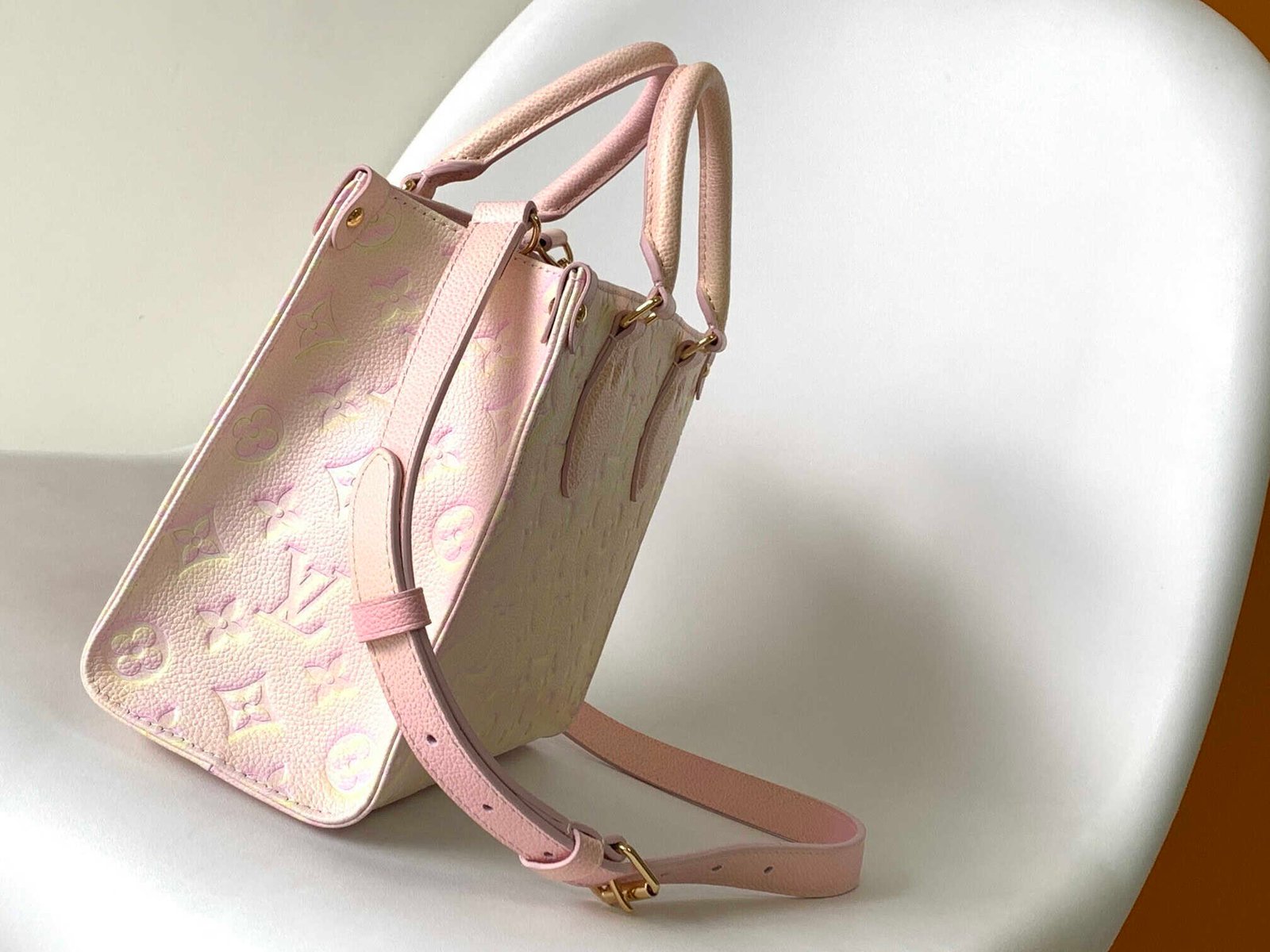 Onthego small Tote bag to the classic Sac Plat handbag in 1968. Monogram Empreinte leather renders the pastel gradient of the Monogram Giant pattern to express festive joy. It can accommodate daily necessities such as iPad Mini. Flexible handles and a detachable shoulder strap provide plenty of carrying options