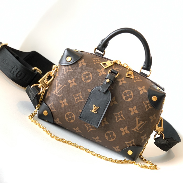 Petite Malle Souple handbag is made of Monogram canvas, integrated with rivet leather corners and leather brand, it will tell the heritage of box making, with nautical style chain, Louis Vuitton Malletier embroidery and detachable wide shoulder strap .