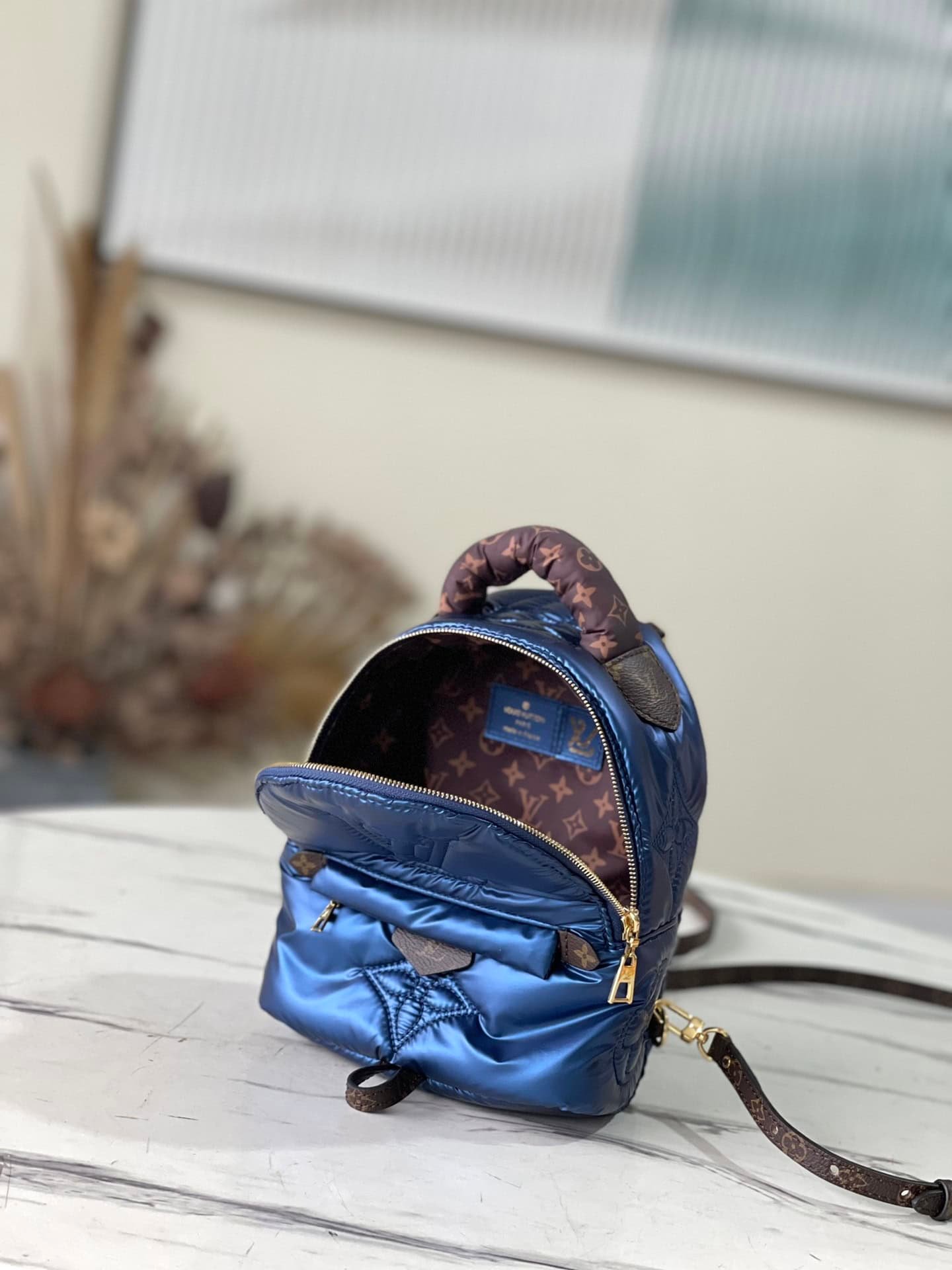 This winter, this Pillow Palm Springs mini backpack is made of comfortable padded Econyl recycled nylon, embellished with Monogram embroidery pattern. Loose handles and adjustable canvas shoulder straps provide a variety of wearing options, releasing a dynamic style at home, on the street or at the ski resort.