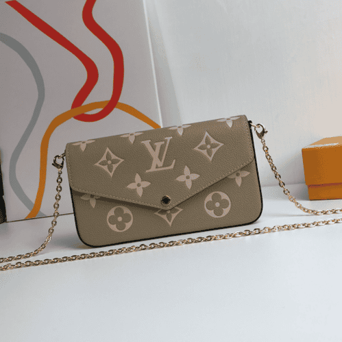 Khaki exclusive real shot! The Pochette Félicie chain bag features the Monogram print in Monogram Empreinte leather and features an envelope shape with a removable interior pocket. Fasten the chain to complete the conversion between the clutch bag and the shoulder bag.