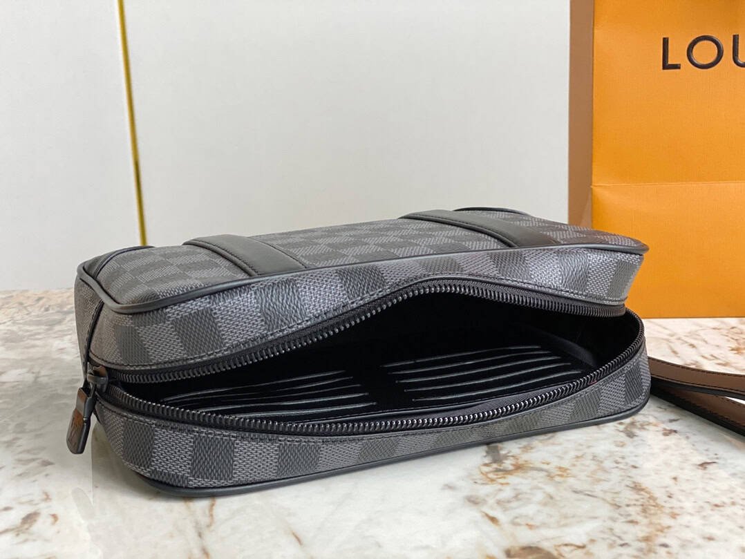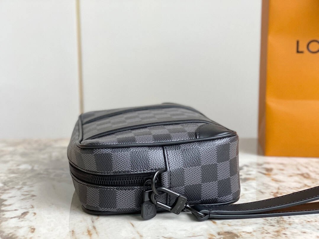 Heiger men’s bag clutch bag series POCHETTE KASAI clutch bag This Kasaï pouch is made of Damier graphite canvas, with reinforced corners and black leather straps on the front, and a zippered back pocket. Its wide zip opening provides access to three flat pockets and ten card slots. The piece can be worn as a bag or on the wrist with its detachable strap.