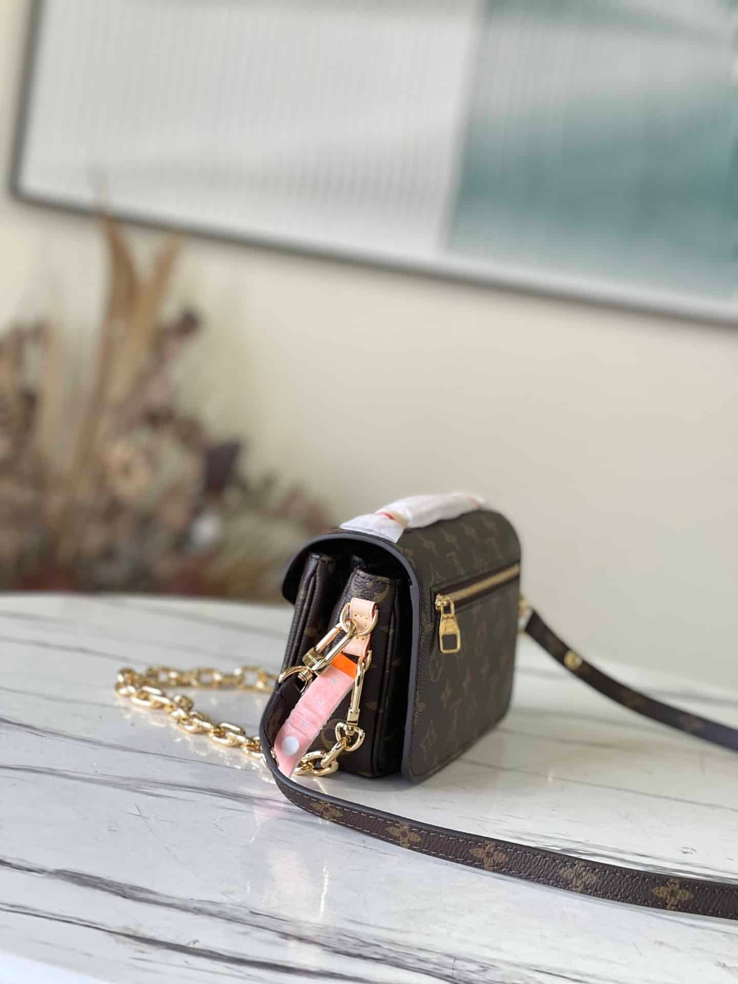 Presbyopic Pochette Métis East West handbags are made of Monogram canvas, calfskin trim and S-lock buckle. It continues the classic elements and has modern details such as short shoulder chains. The roomy shape features compartments, interior zip pockets, and exterior pockets to easily store your iPhone 13.