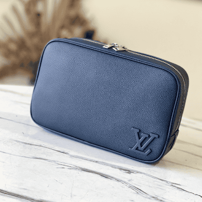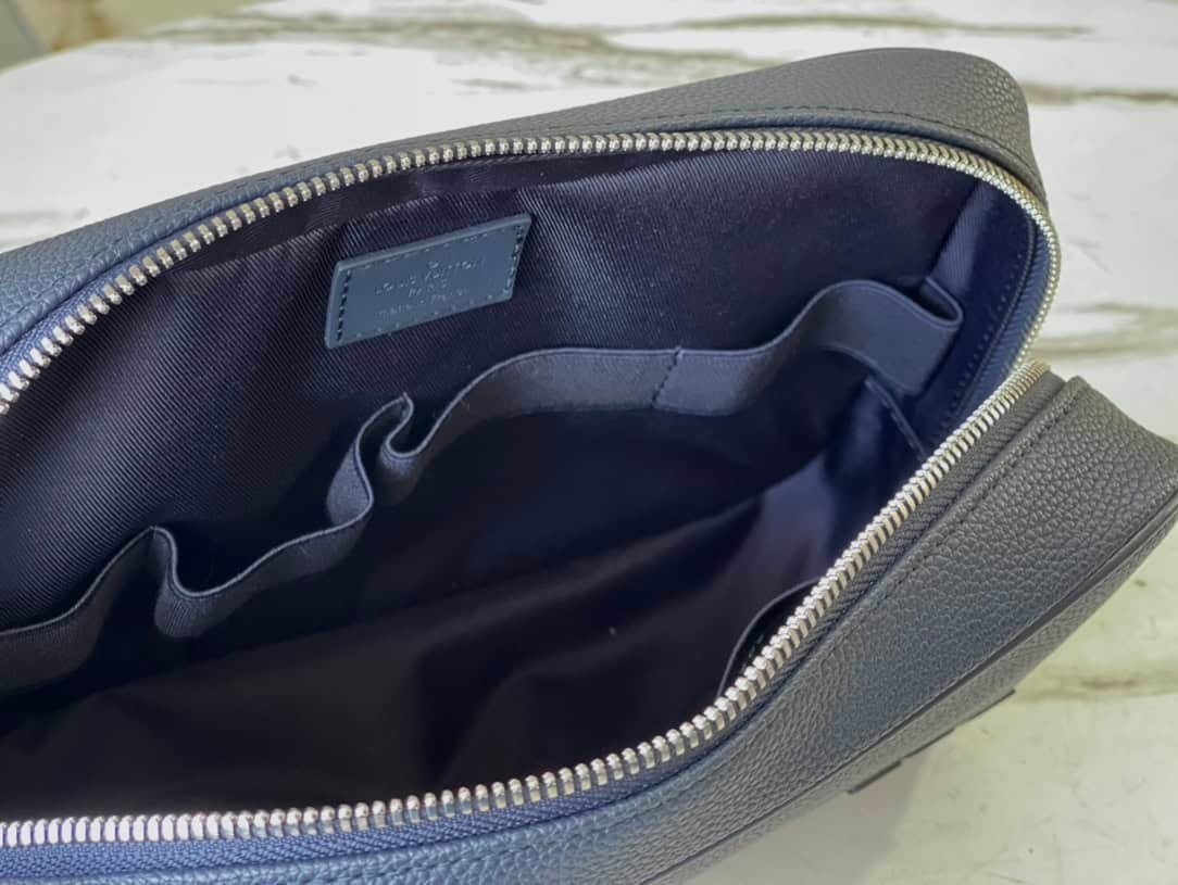 Blue Full Leather Clutch Clutch Collection Nowadays, travelers all hope to have a practical toiletry bag that can be easily put into the suitcase for short trips. This large toilet bag is crafted from black grained leather with distinctive features.