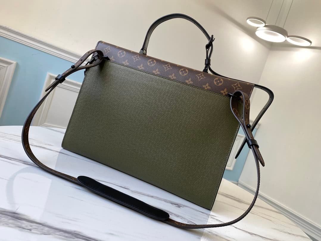 Robusto briefcase in the hands of Virgil Abloh reveals the grace of Taïga leather, with the iconic pin buckle from Steamer handbags and adjustable leather handles and shoulder straps, so that important documents and personal items can be carried safely .