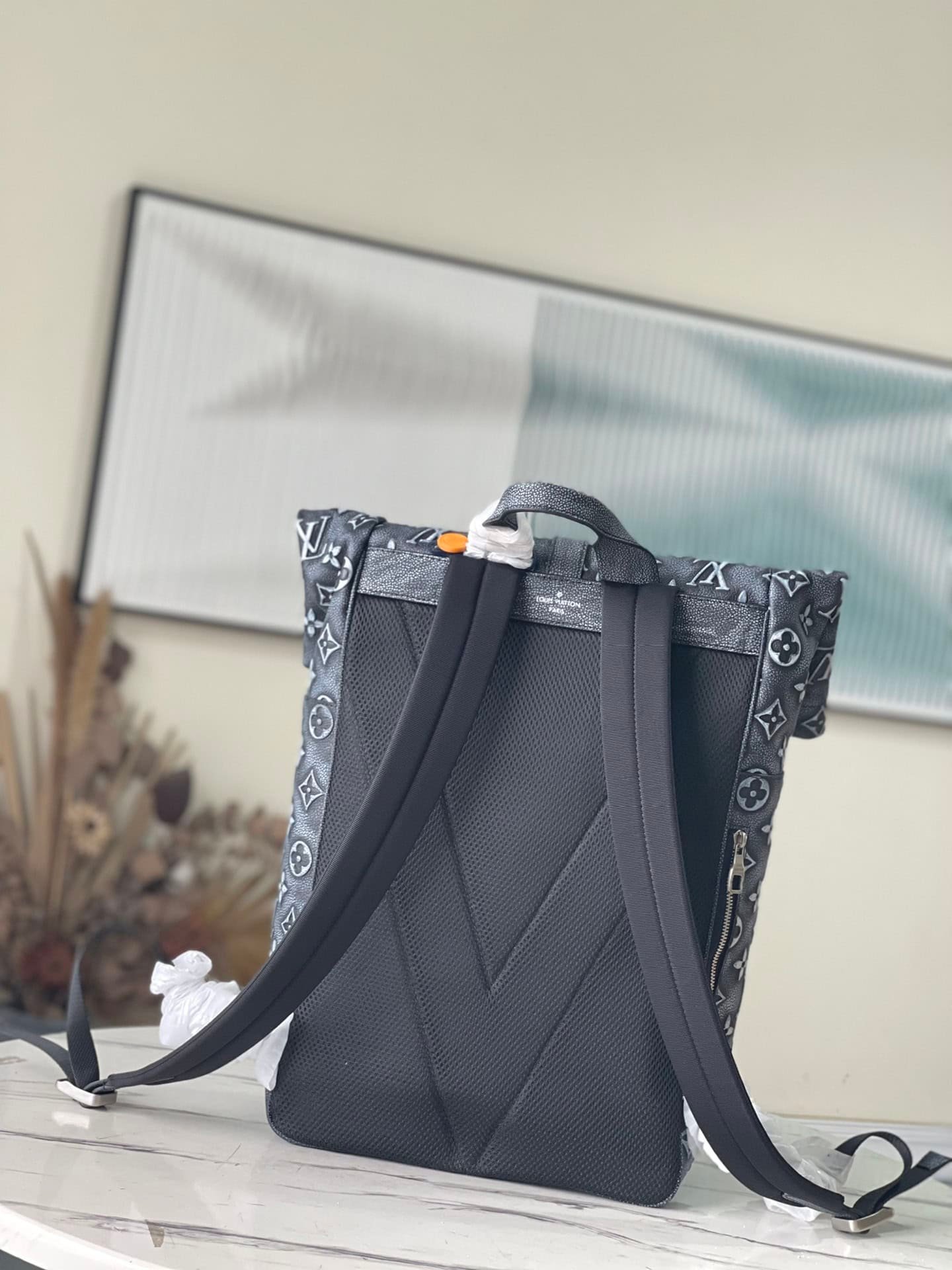 Roll Top Backpack adopts embossing and printing process to paint the Monogram pattern with fading effect on the surface of calf leather, making it a personalized choice besides traditional backpacks. Compartments and pockets provide easy access to essentials, and there’s plenty of room for a 15-inch laptop.