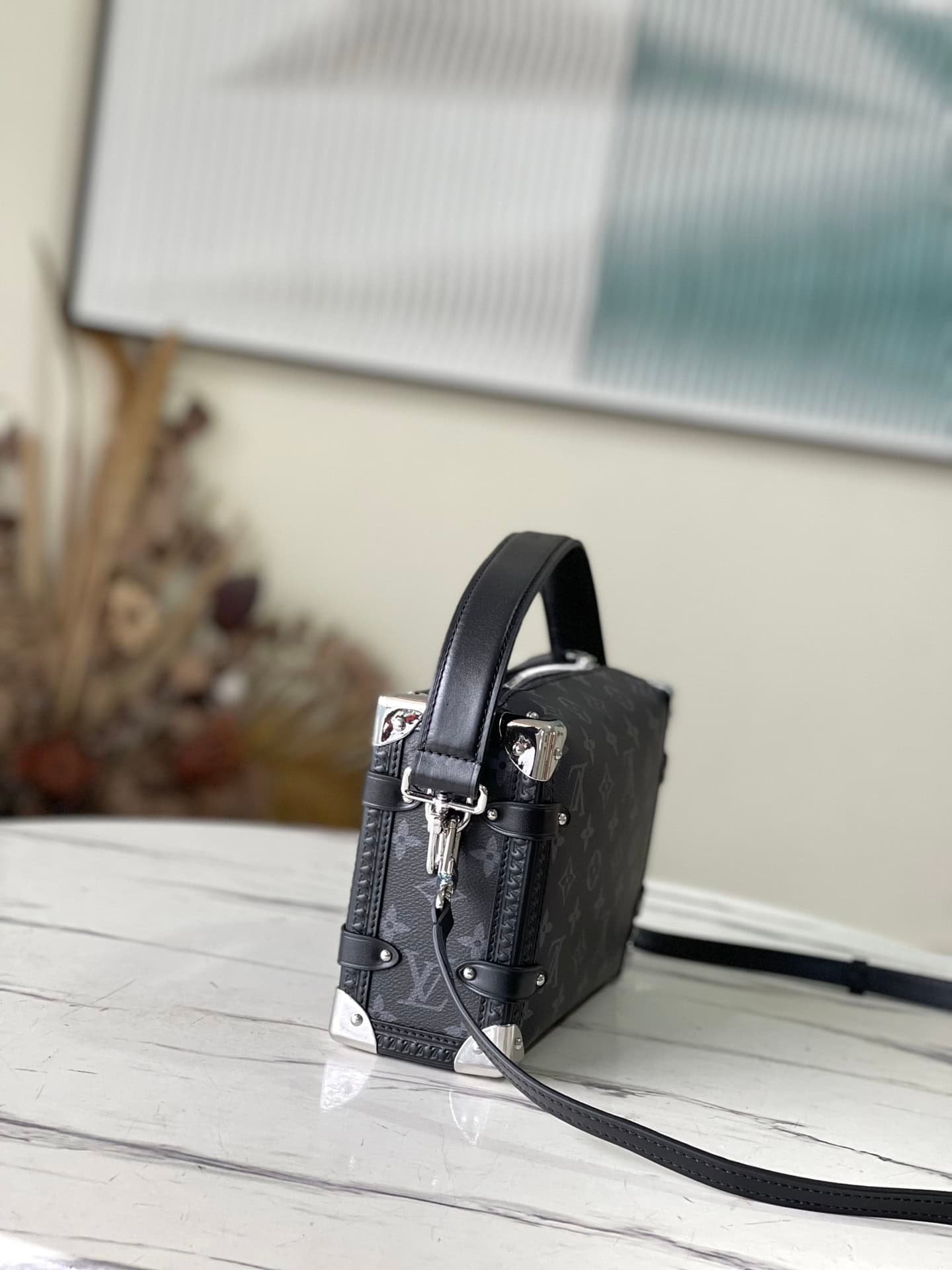 Black flower Nicolas Ghesquière repeatedly explored the box-making heritage to create this Side Trunk small handbag. Monogram canvas is combined with leather trim, and the leather zipper puller is creatively connected with the iconic S-lock buckle, and the reinforced metal corners gather the sight together. The wide handles and thin leather shoulder strap are detachable.