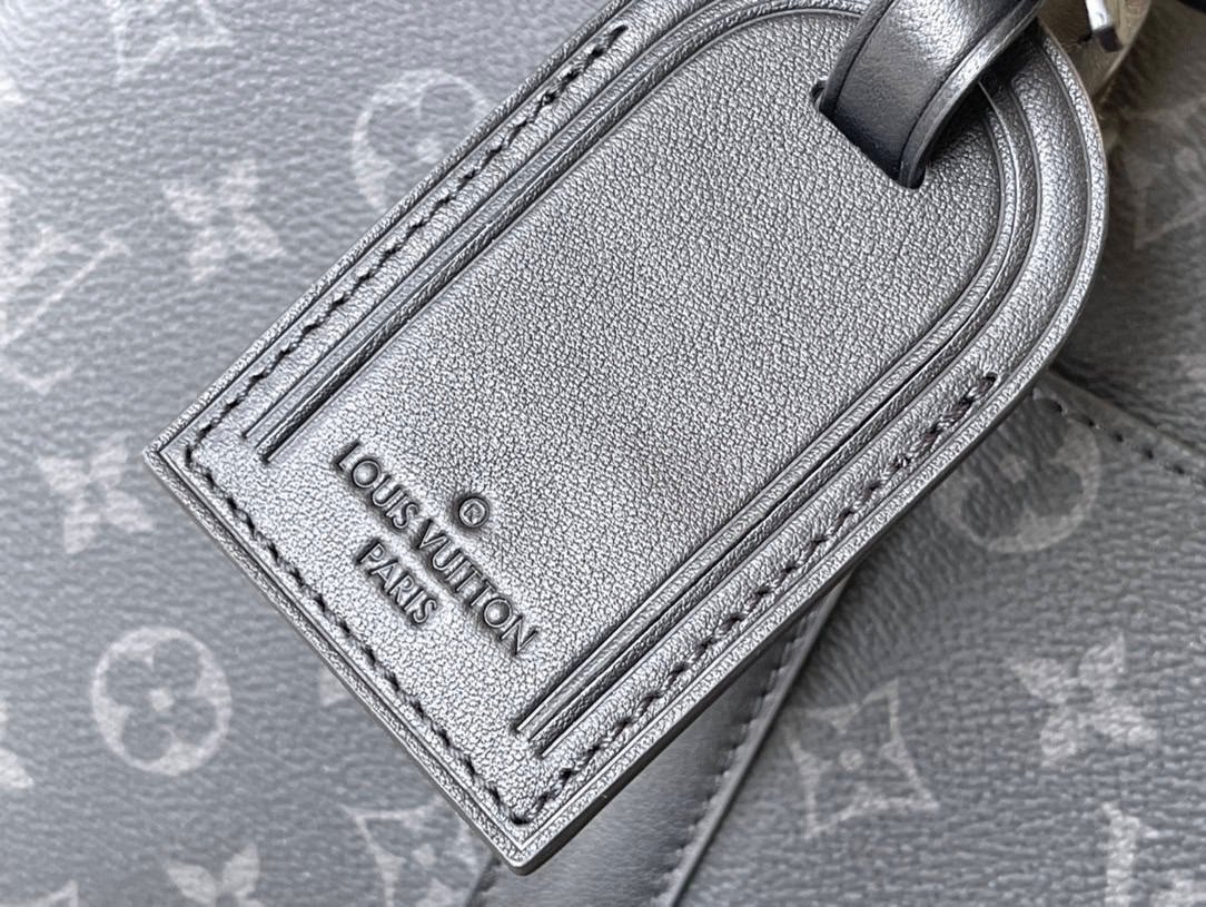 This small Voyage briefcase in Damier Graphite coated canvas with leather side straps, reinforced corners, top handle and nameplate. An exterior pocket is convenient for smartphone storage, a padded interior compartment can hold a 13-inch laptop, and the detachable and adjustable shoulder strap provides comfortable shoulder carry.