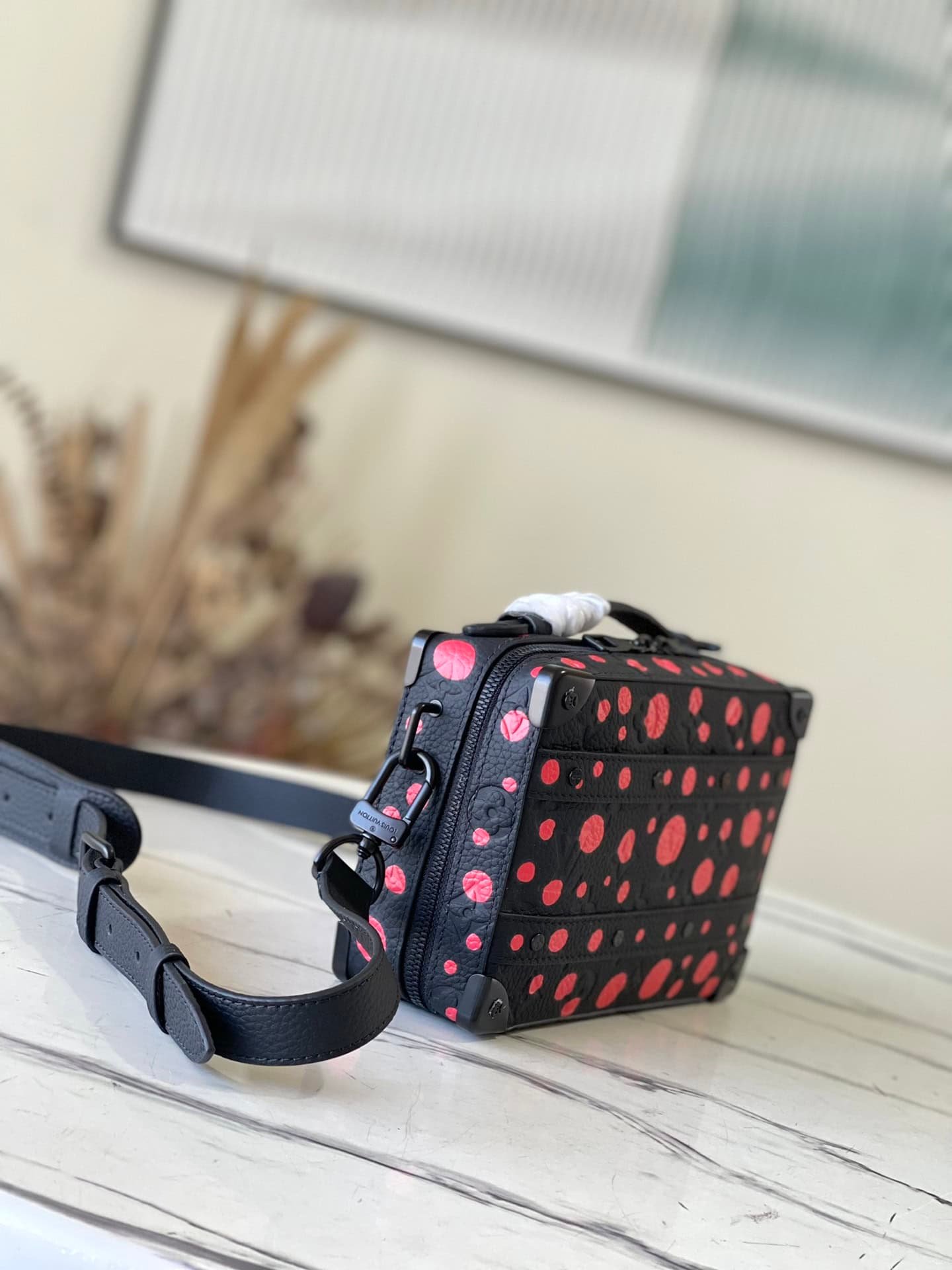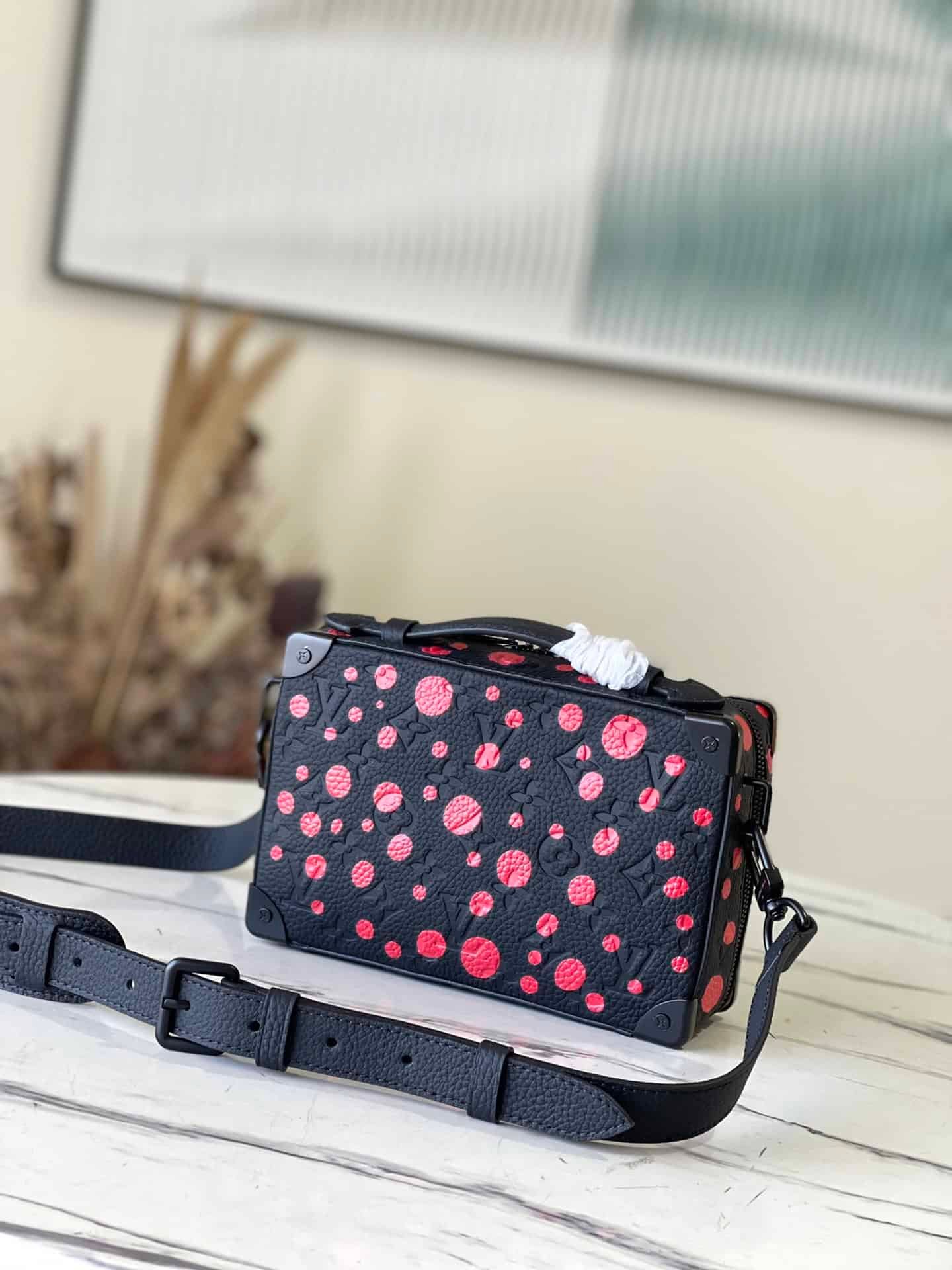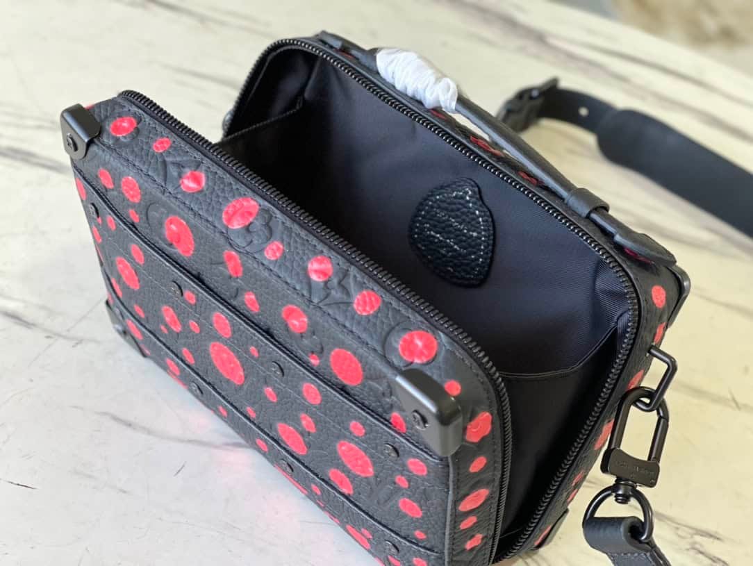 This Handle Soft Trunk handbag is Monogram leather embossed with fine texture, with rivet corners and leather reinforcement belt continuing the box-making heritage. The wide-mouth opening and closing is convenient for taking and placing items, suitable for storing small electronic devices and accompanying needs. The sleek shape and detachable shoulder strap make it easy to carry.