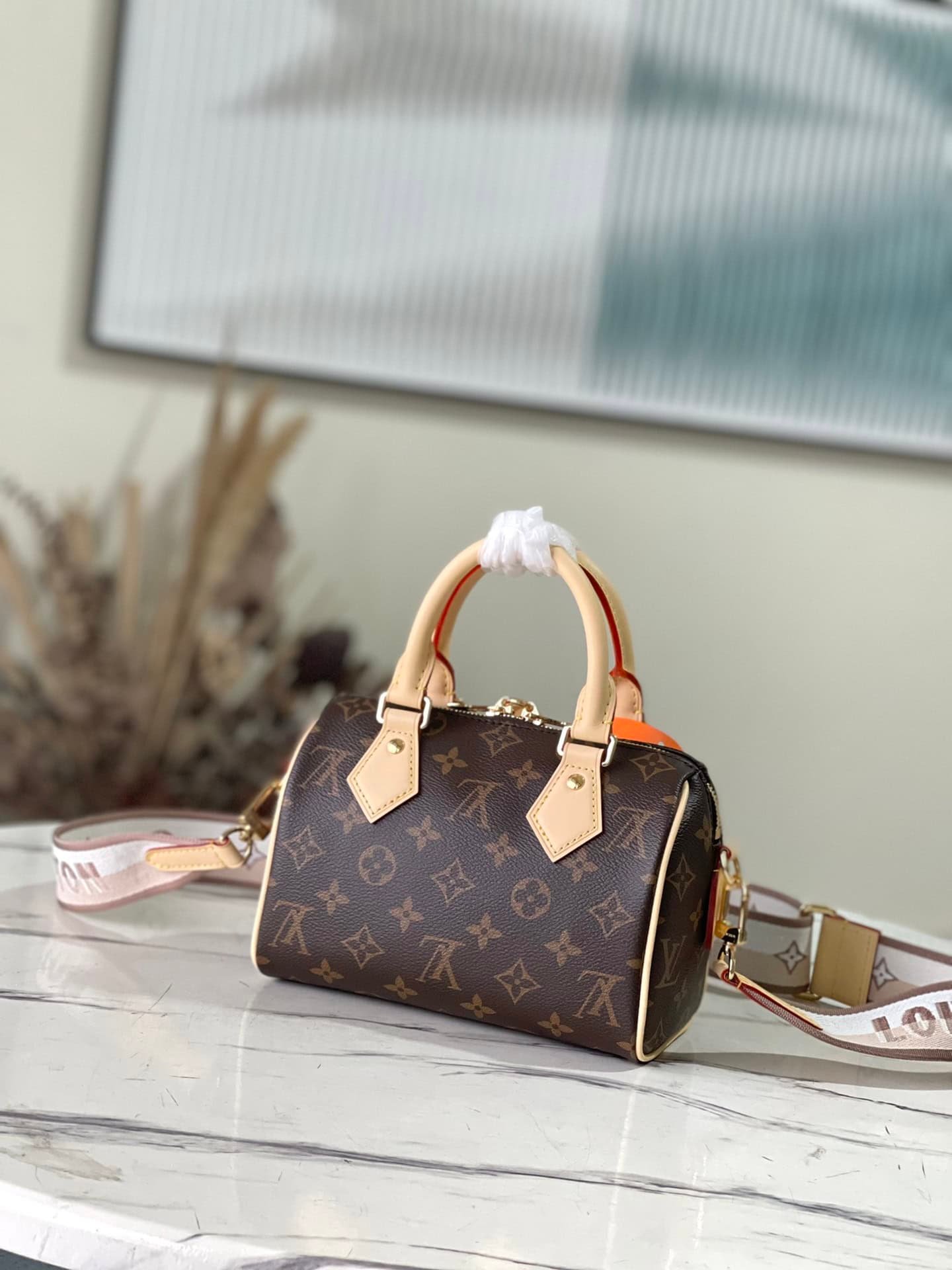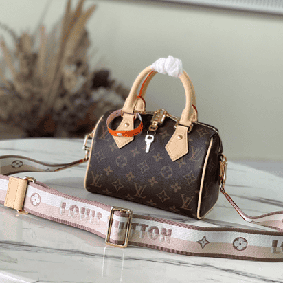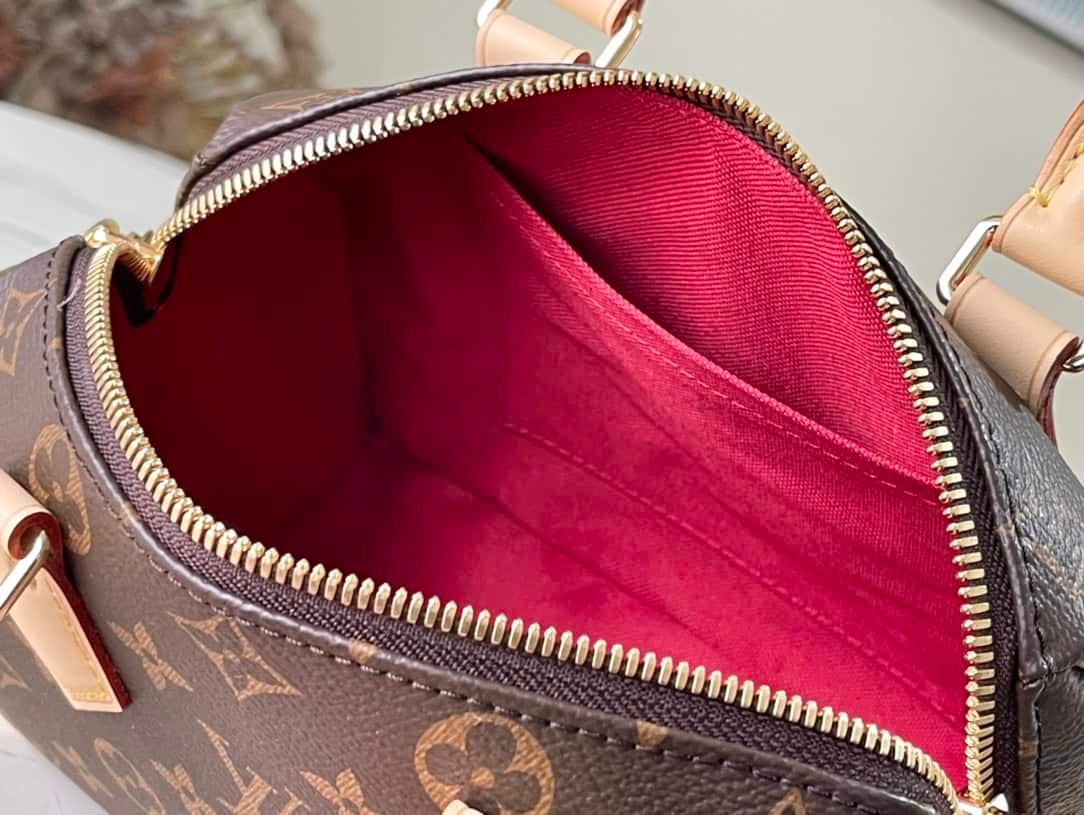 Inspired by classic travel bags, the Speedy Bandoulière 20 features Monogram canvas and calfskin trim with rolled leather handle and padlock. The brand logo is embellished with a detachable shoulder strap, which can be switched over the shoulder and crossbody at will.