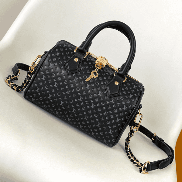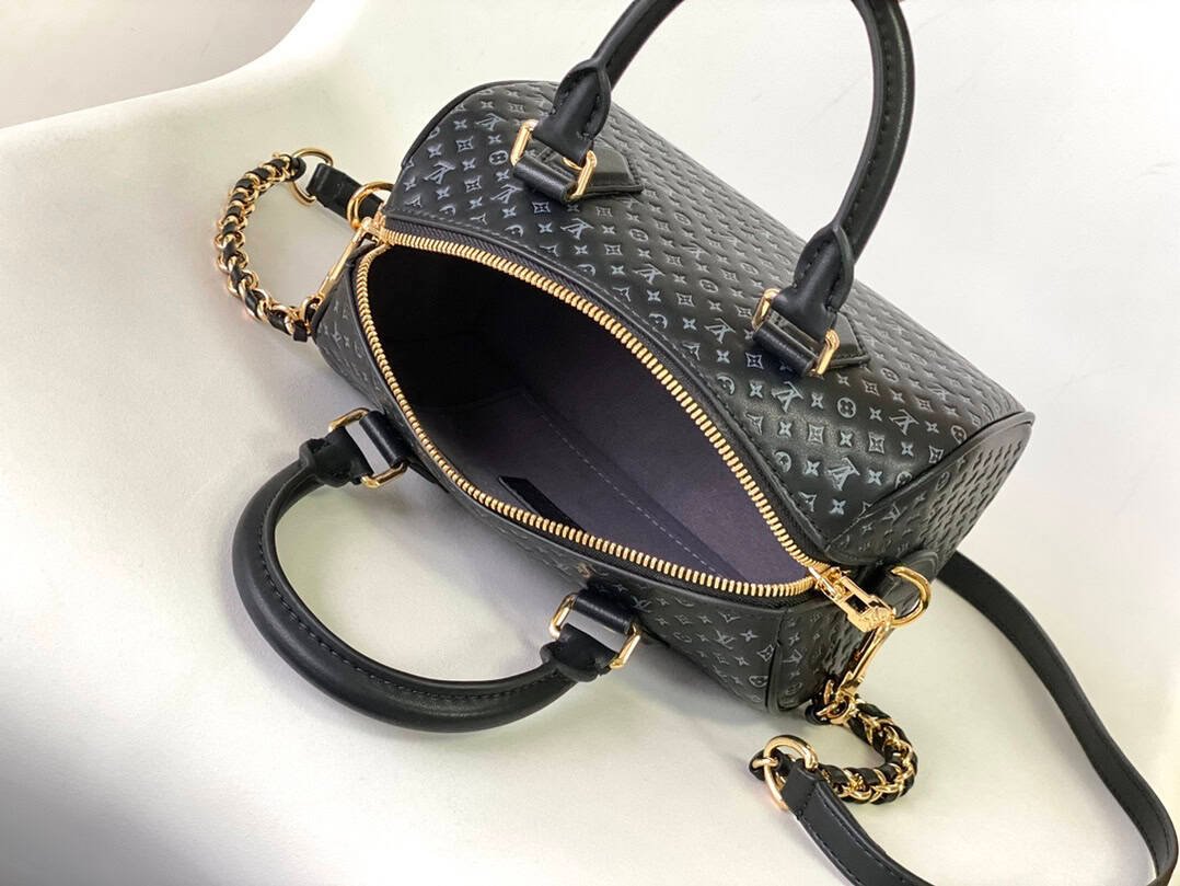 The latest Speedy Bandoulière 20 full leather embossed flower chain small pillow bag cowhide embossed mini flower, with detachable and adjustable braided leather chain bag.