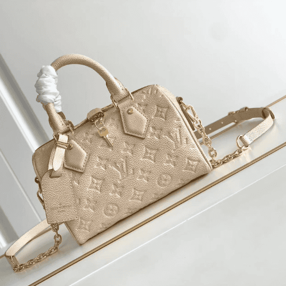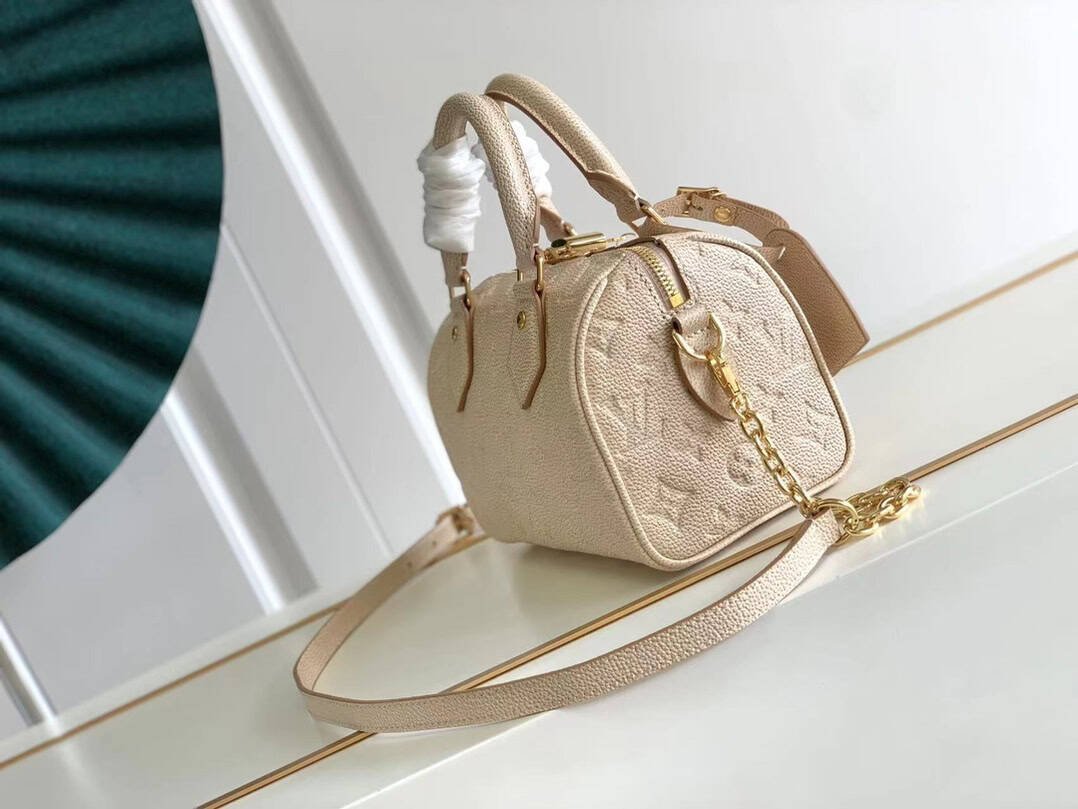 This Speedy Bandoulière 20 handbag is subtly radiant in new season colors. The classic shape, rolled leather handle and key holder recall the design elements of Louis Vuitton luggage in the 20th century, and the detachable chain and leather shoulder strap can be carried on the shoulder or cross-body.