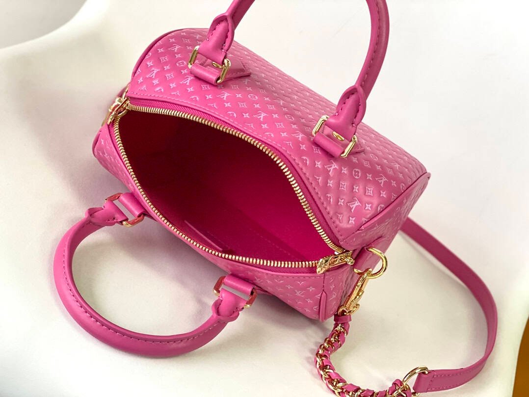 The latest Speedy Bandoulière 20 full leather embossed flower chain small pillow bag cowhide embossed mini flower, with detachable and adjustable braided leather chain bag.