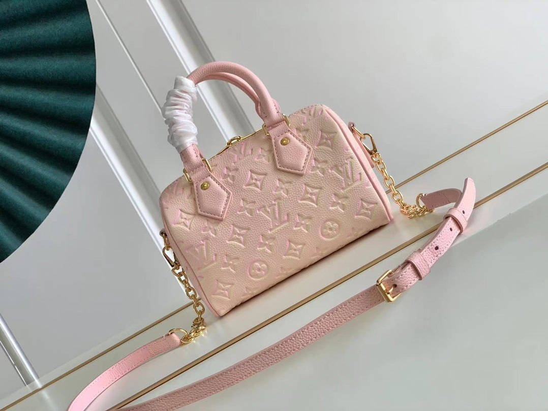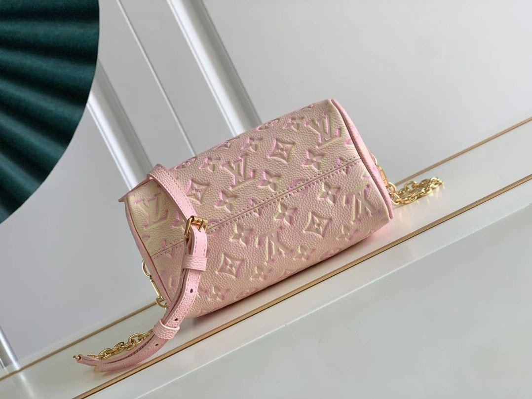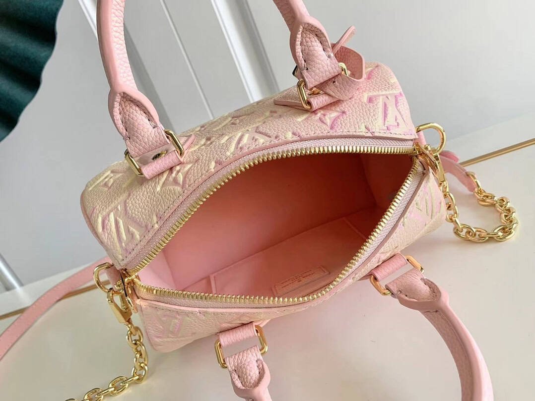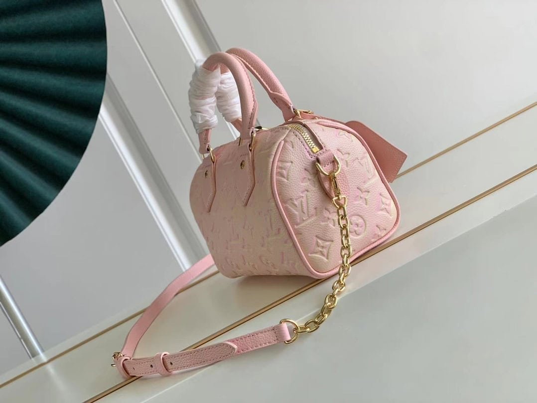 This Speedy Bandoulière 20 handbag reveals subtle luster in new season colors. The classic shape, rolled leather handle and key holder recall the design elements of Louis Vuitton luggage in the 20th century, and the detachable chain and leather shoulder strap can be carried on the shoulder or cross-body.