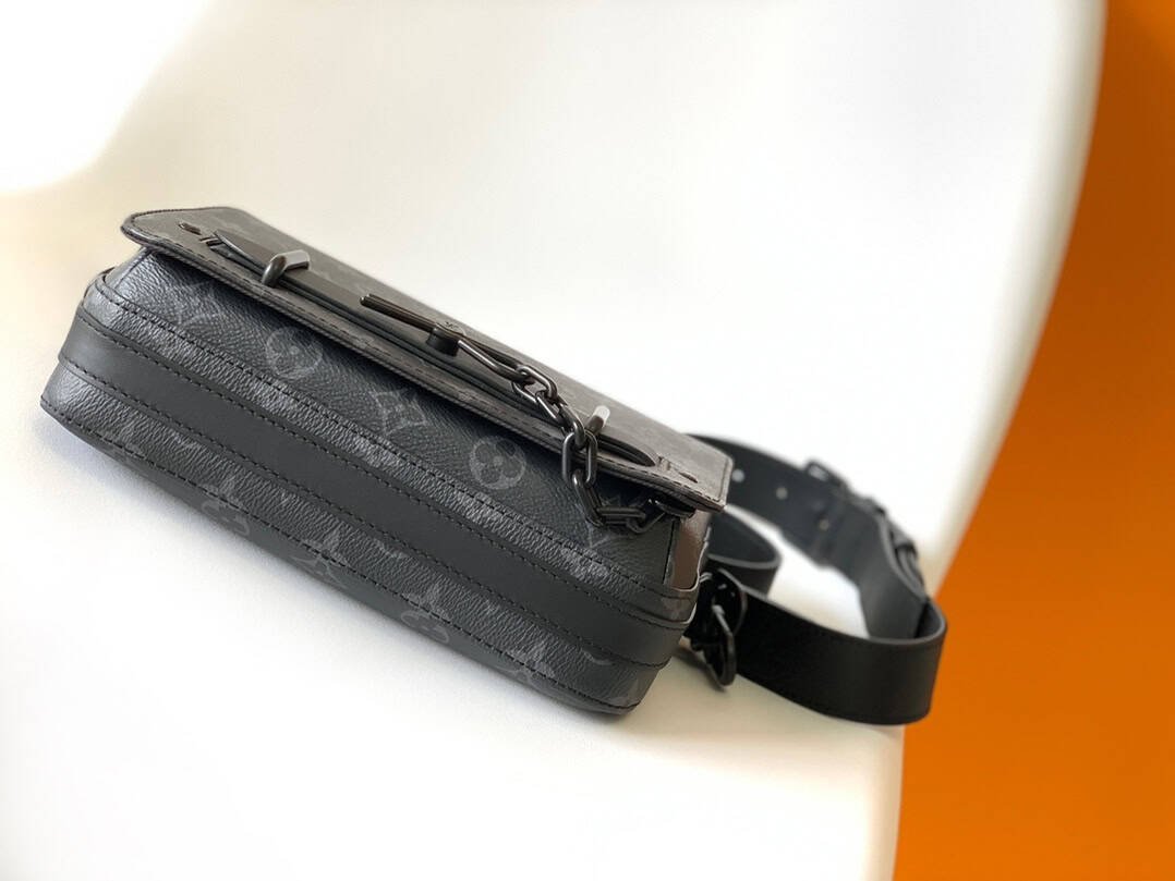 This new Steamer messenger bag injects brand traditional elements into the New Classics series, with exquisite shape. Iconic Monogram Eclipse canvas is complemented by classic elements like a Steamer-inspired chain. Comes with a detachable shoulder strap for easy carrying. The zippered compartment offers plenty of storage space, and the front pocket flap and magnetic closure keep your belongings secure.